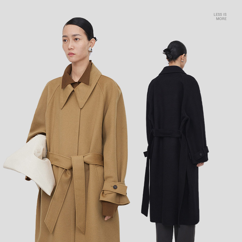 LESS冬季绵羊毛大衣外套女休闲收腰长款双面毛呢含羊绒2N0812720