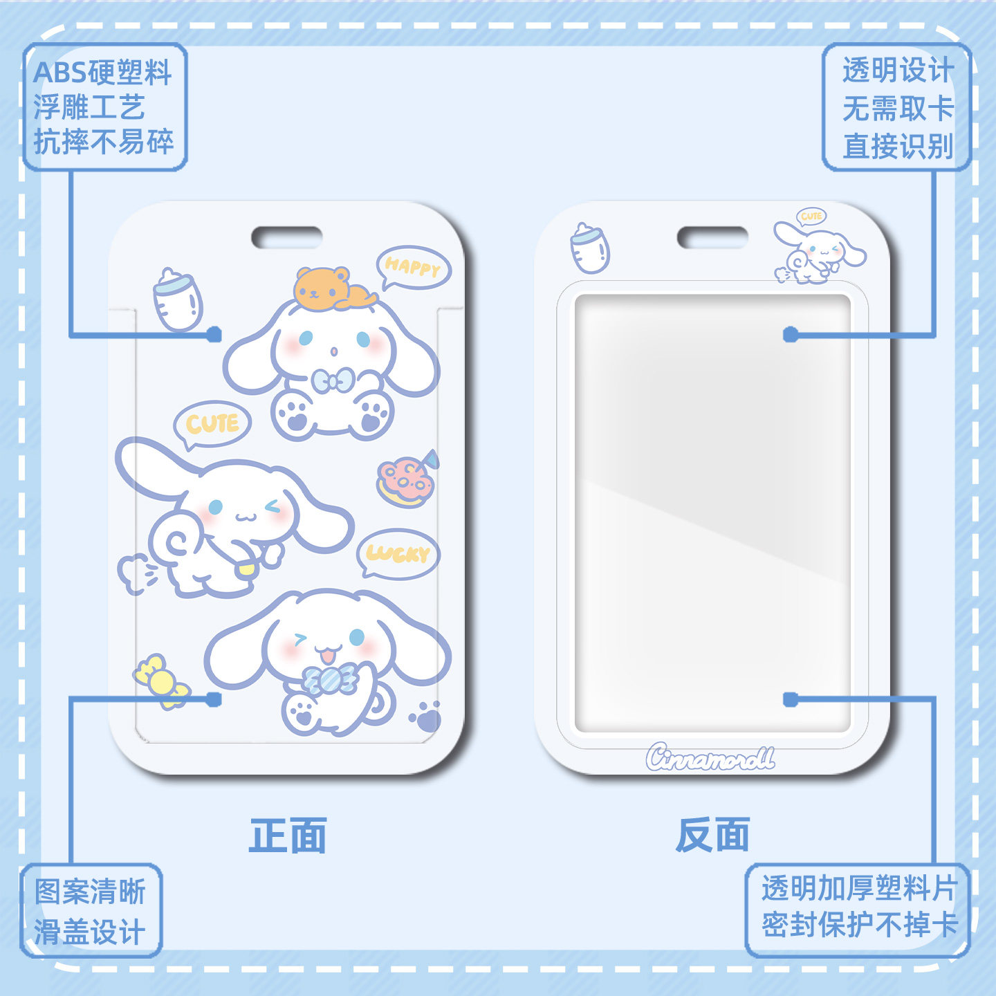 可爱蓝色玉桂狗校园卡卡套公交学生饭卡羊城通市民卡银行门禁接送卡保护壳工牌透明绳子公仔钥匙扣卡通风少女