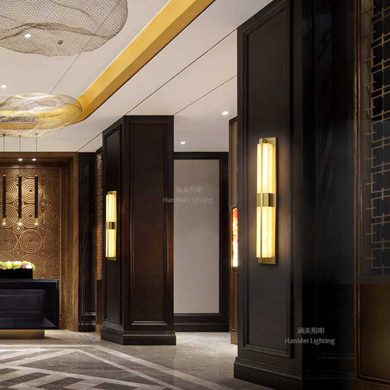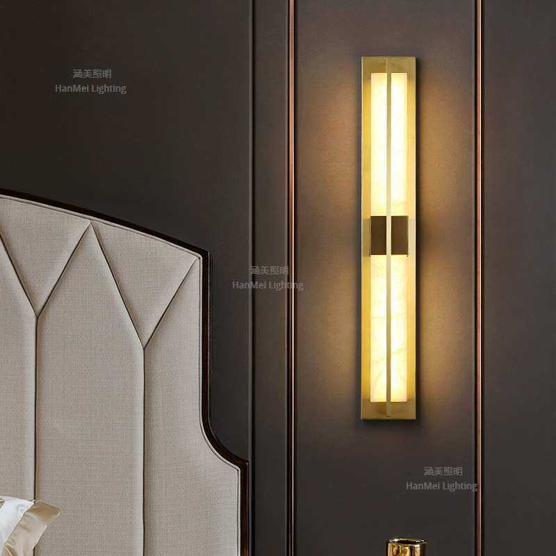 新中式云石壁灯现代客厅电视背景墙灯长条全铜室外走廊卧室床头灯