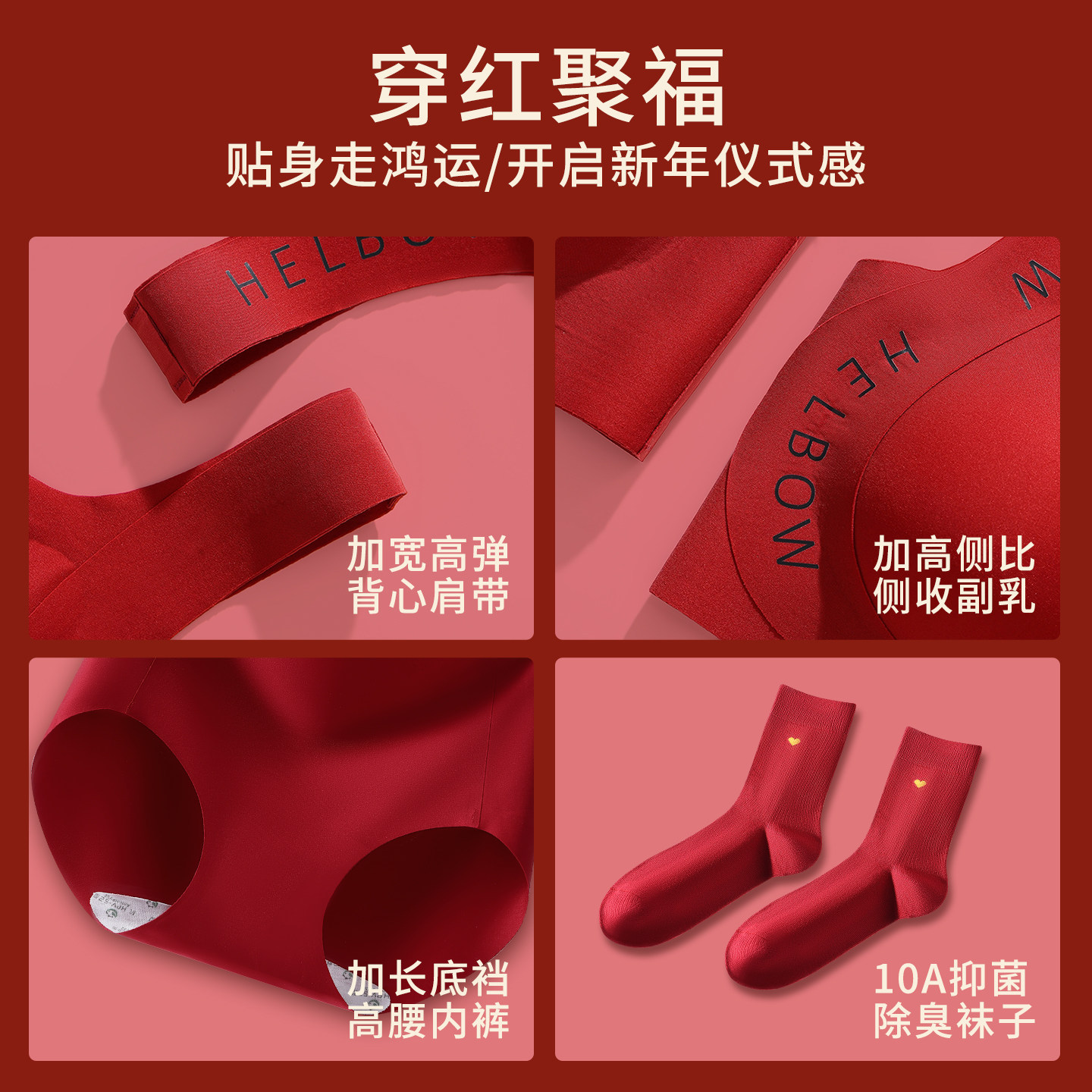 2026马年本命年红色无痕内衣女套装新年小胸聚拢大胸显小新娘结婚