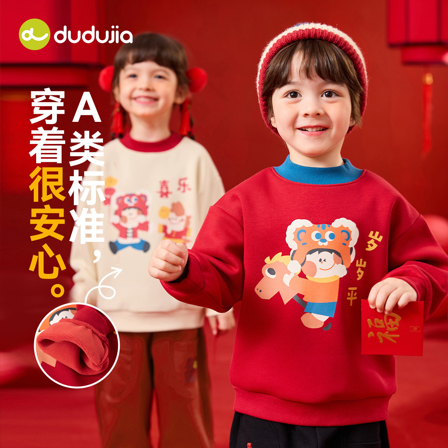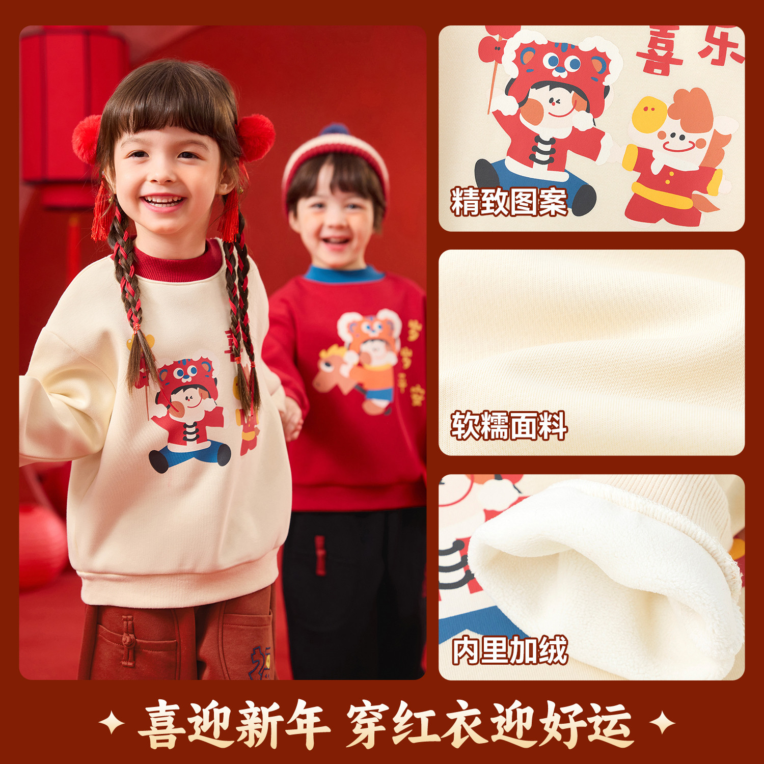 嘟嘟家儿童拜年服红色喜庆新年唐装卫衣宝宝加绒男童冬装女童上衣