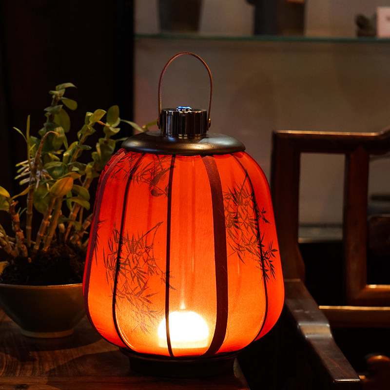 物几无线手提宫灯笼布艺台灯新中式复古床头灯高级感书法灯