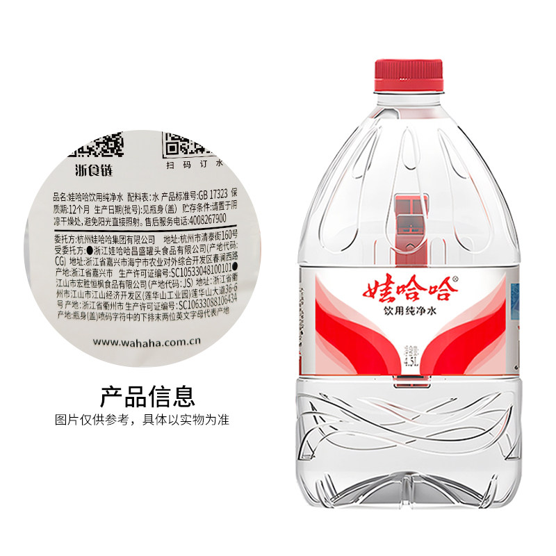 娃哈哈纯净水4.5L*4桶整箱带手柄家庭大瓶桶装泡茶饮用水非矿泉水