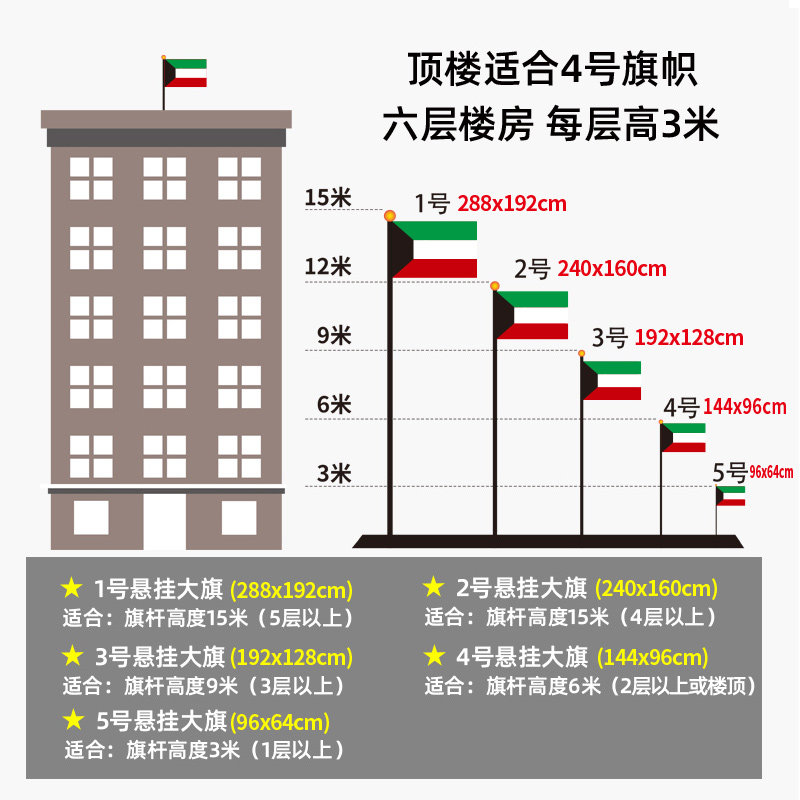 科威特国旗12345678号户外旗手摇旗串旗办公桌旗室内会议签约旗外国旗万国旗小旗帜广场装饰吊旗落地旗
