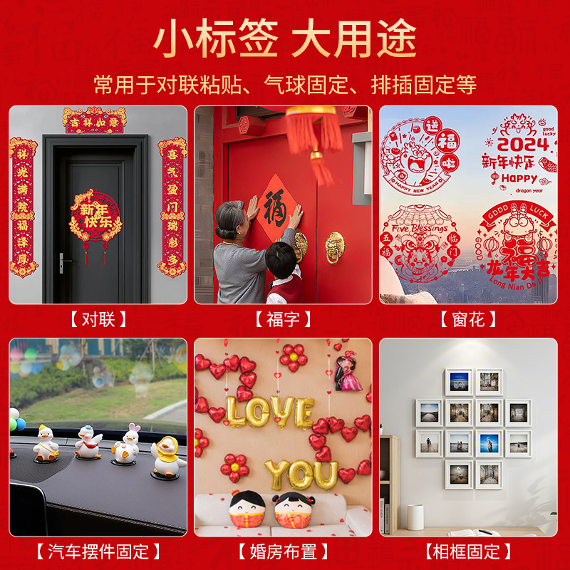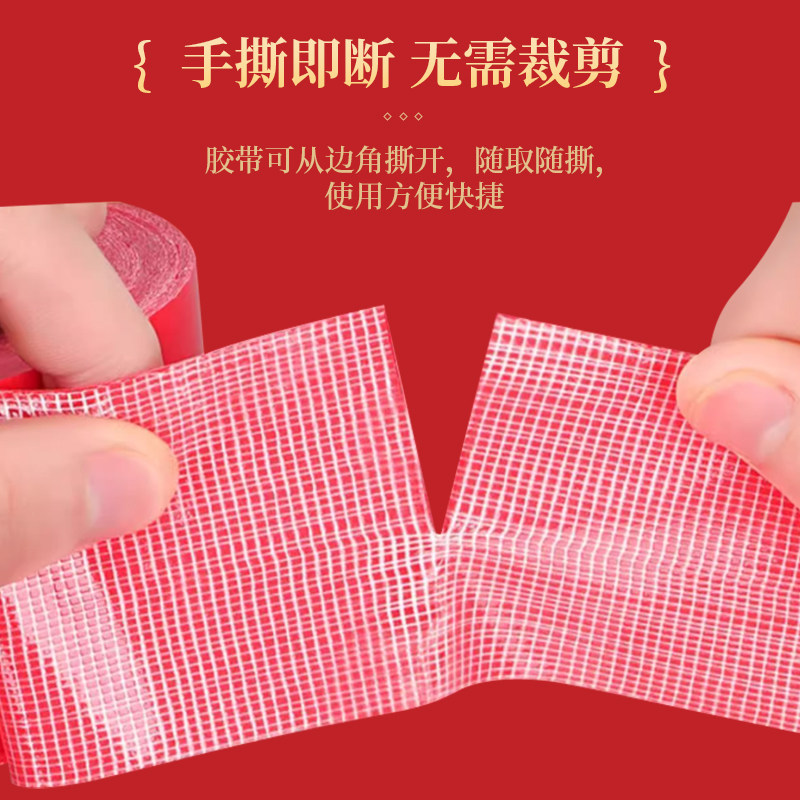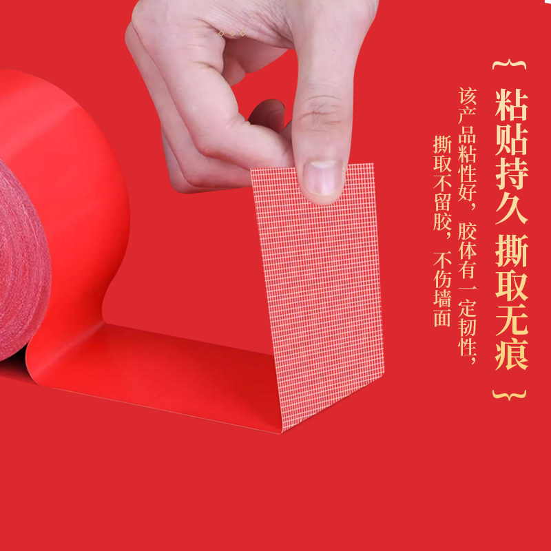 贴春联对联双面胶带撕下不留痕迹红色网格布基双面无痕胶布婚庆婚房装饰气球喜字福字年画高粘度强力固定墙面