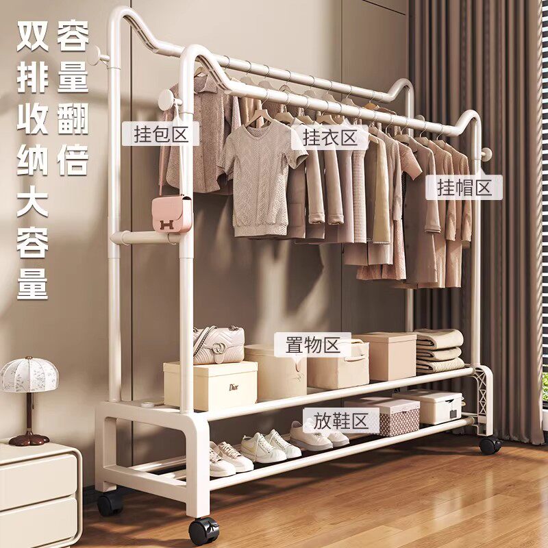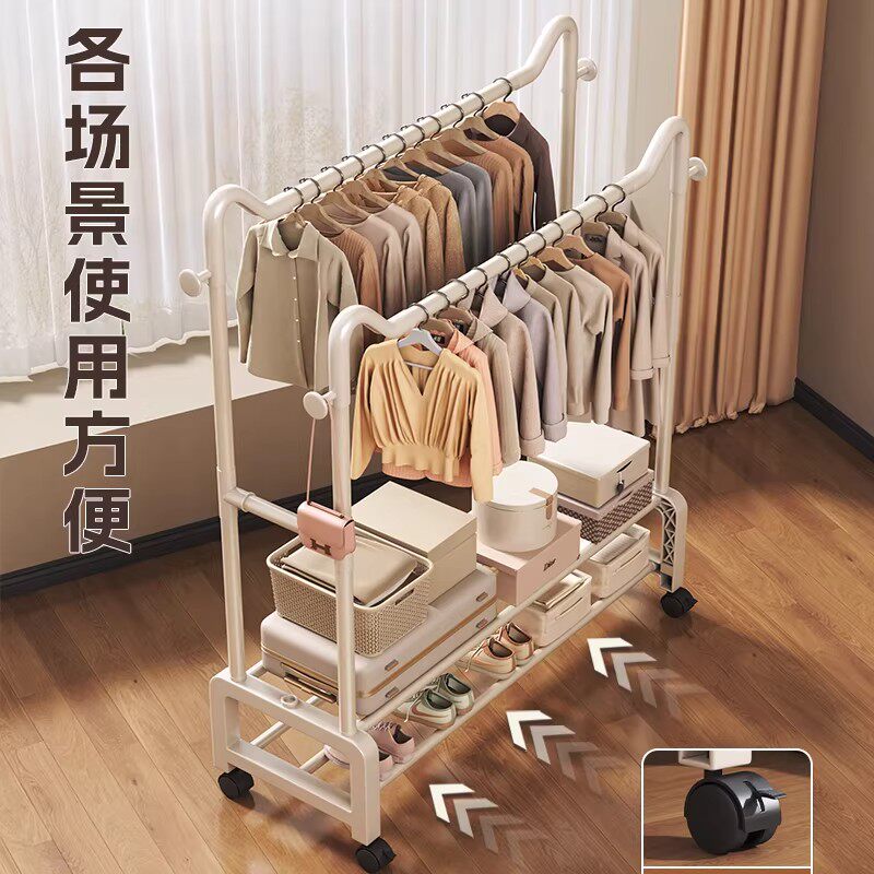 晾衣架落地家用卧室挂衣架宿舍室内双杆双层晒衣服架子简易凉衣杆