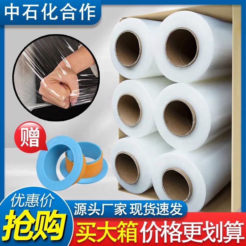 PE拉伸膜缠绕膜50cm塑料薄膜工业保鲜膜大卷打包膜包装膜透明商用
