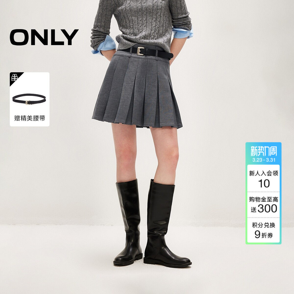 ONLY2026春季新款宽边腰头设计学院风A字显瘦百褶裙短裙半身裙女