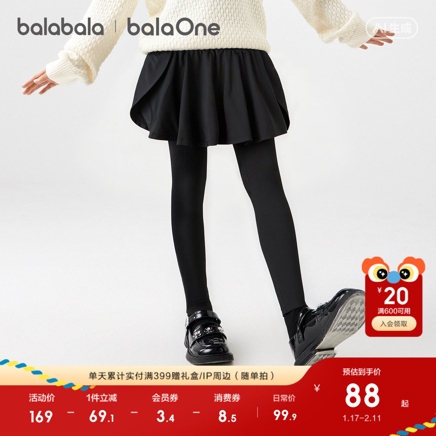 【balaOne】巴拉巴拉童装儿童打底裤女童2026春装新款假两件裙裤