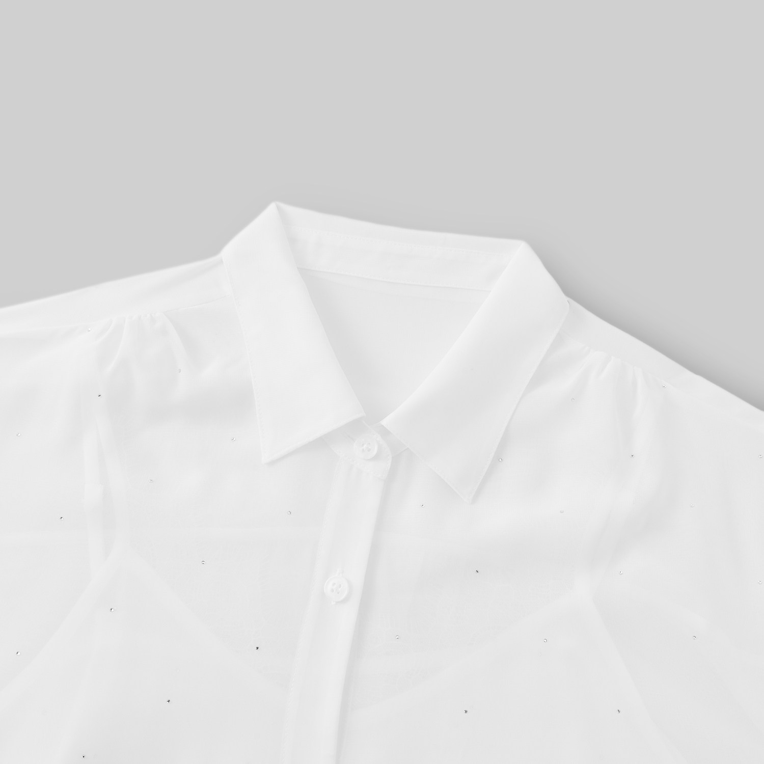 雪纺烫钻柔中带骨,领口蕾丝仔细考量
