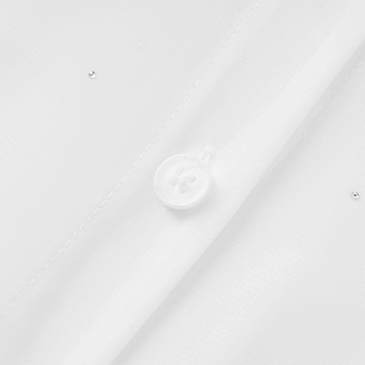 爱居兔白色假两件翻领衬衫女2026年夏季新款烫钻设计感雪纺上衣