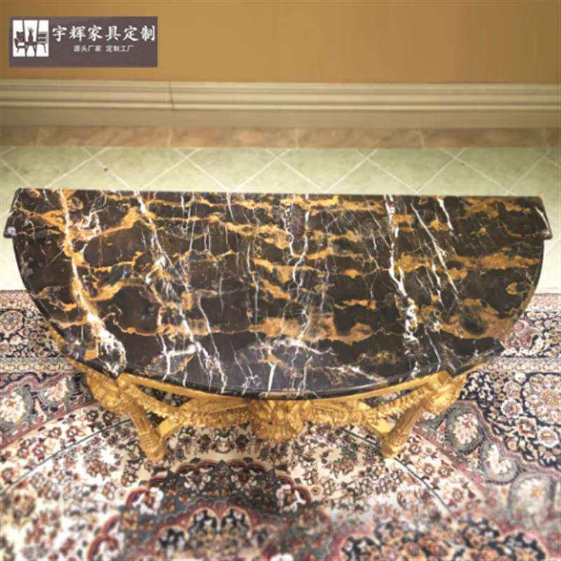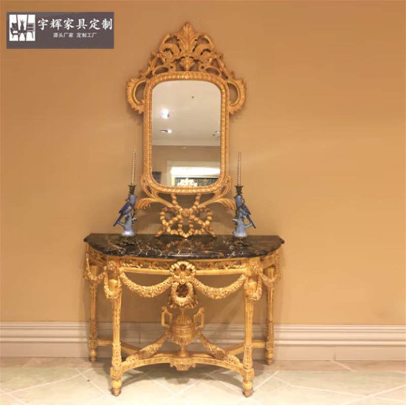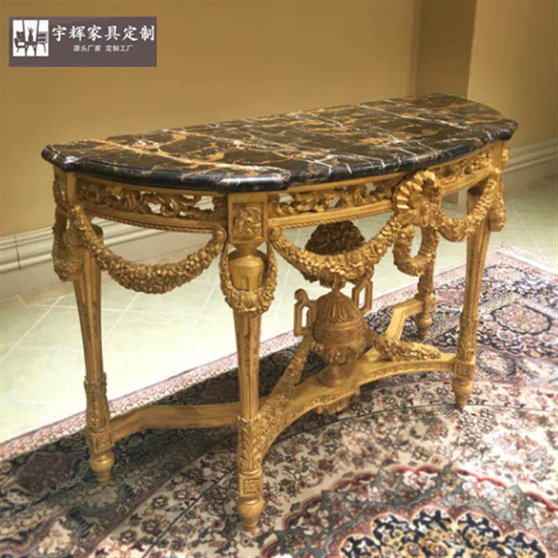 亚历山大家具意式新古典实木雕刻玄关柜大理石面板法式别墅门厅柜