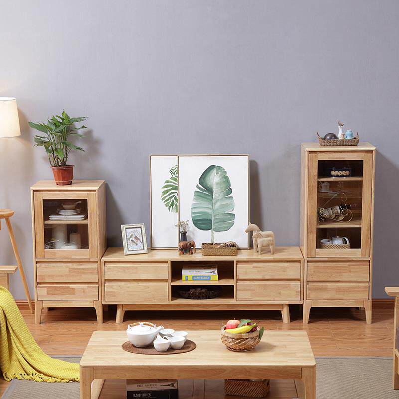北欧实木电视柜 简约视听柜小户型地柜厅柜橡胶木1.5/1.8米电视柜