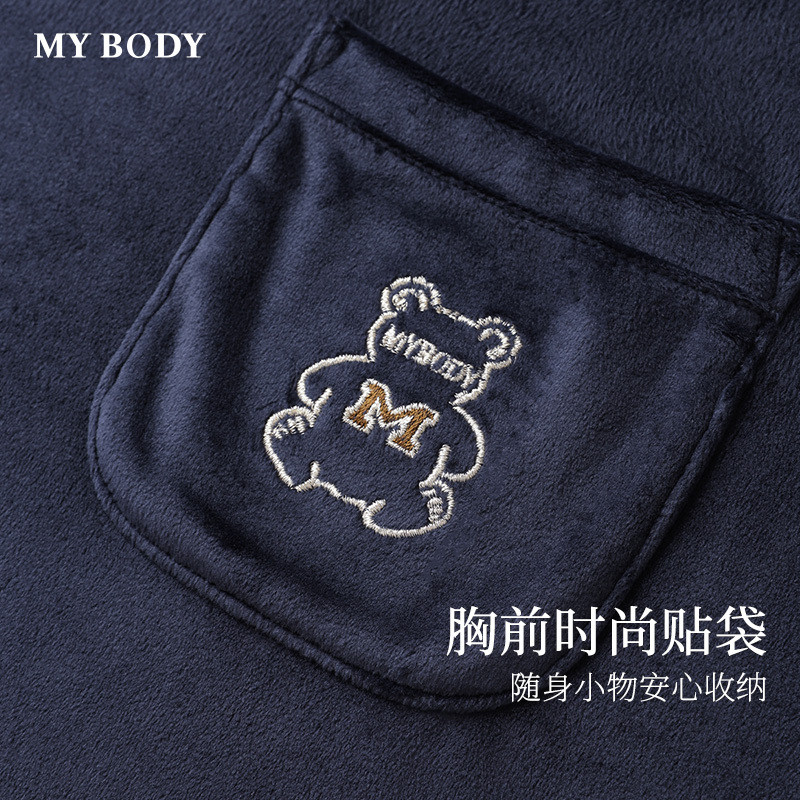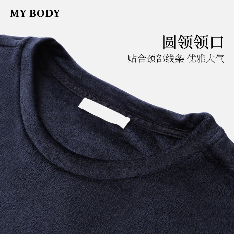 商场同款MYBODY冬季新款睡衣男基础圆领暖绒长袖可外穿家居服套装