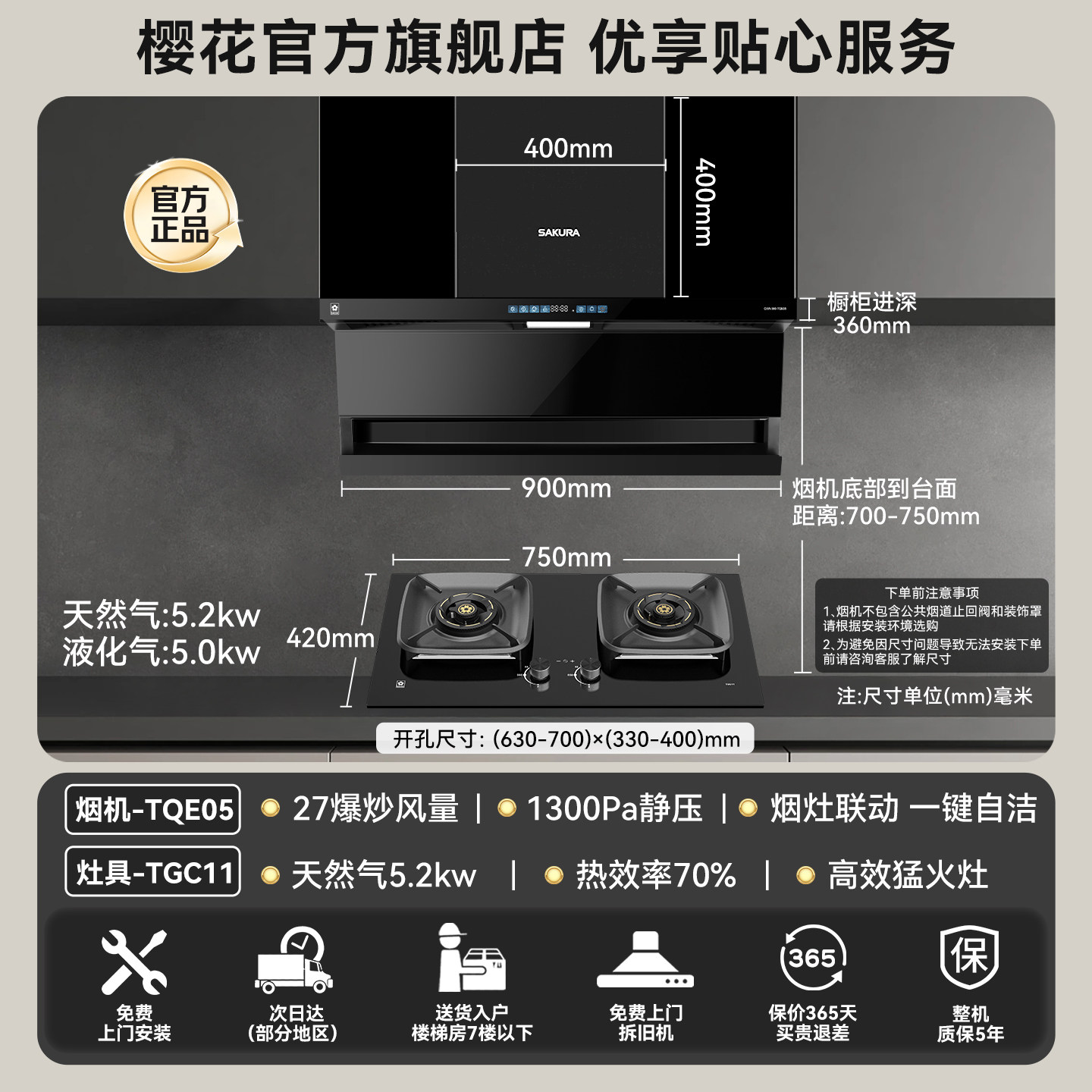 樱花抽油烟机定时烟灶联动套装家用厨房变频顶侧三吸官方旗舰店