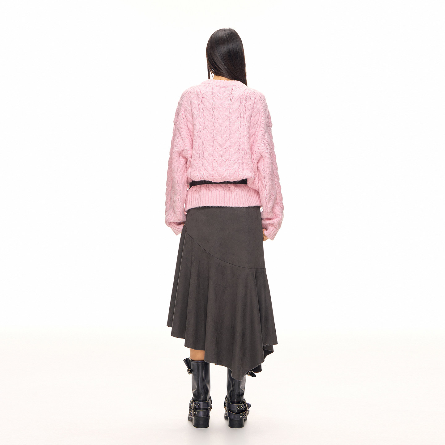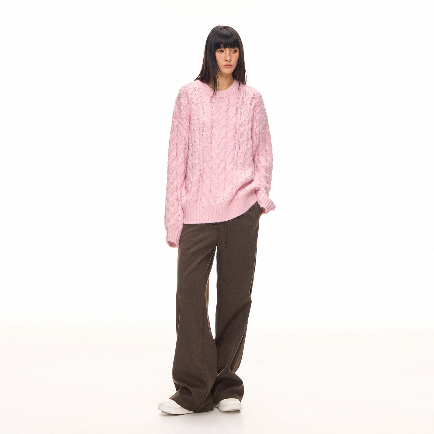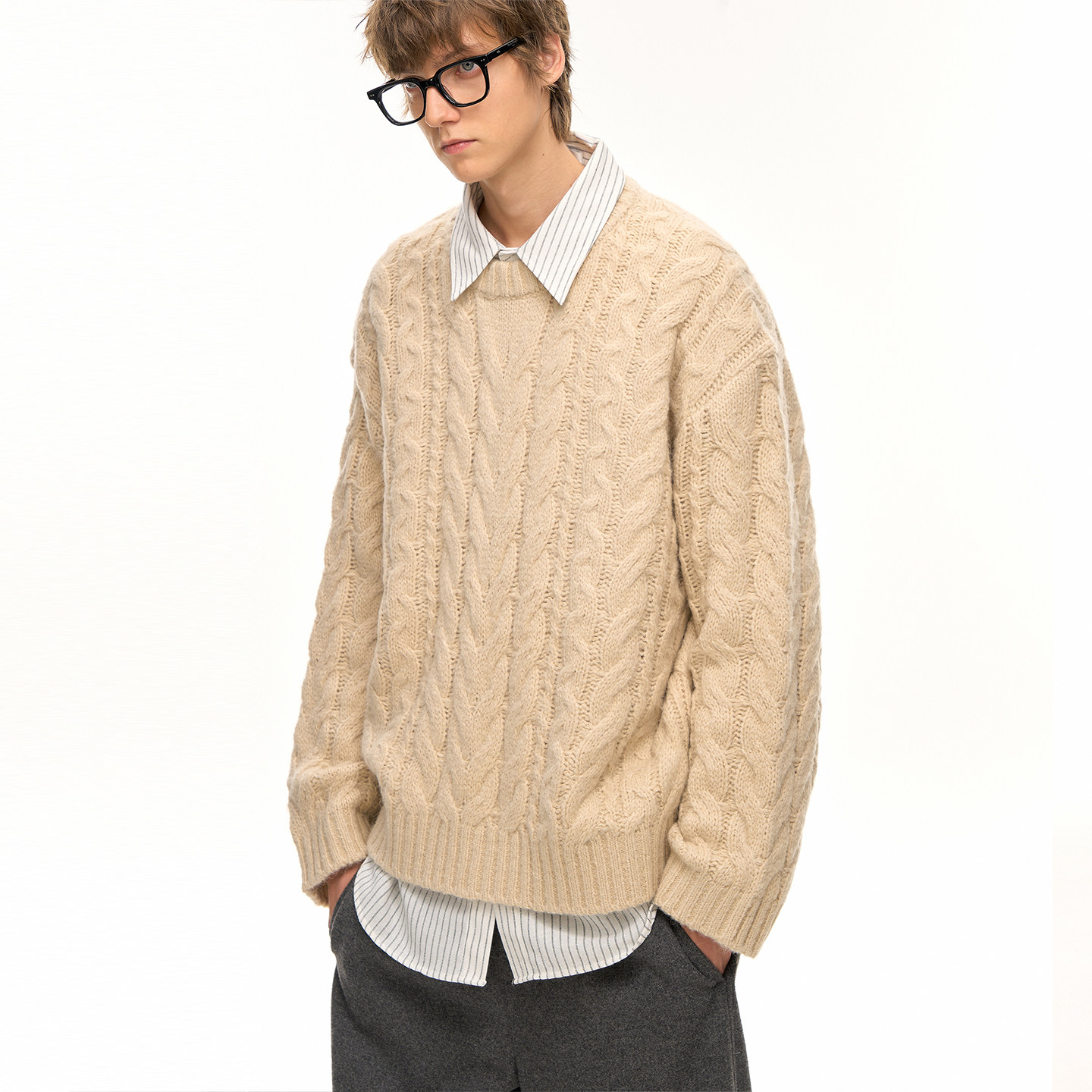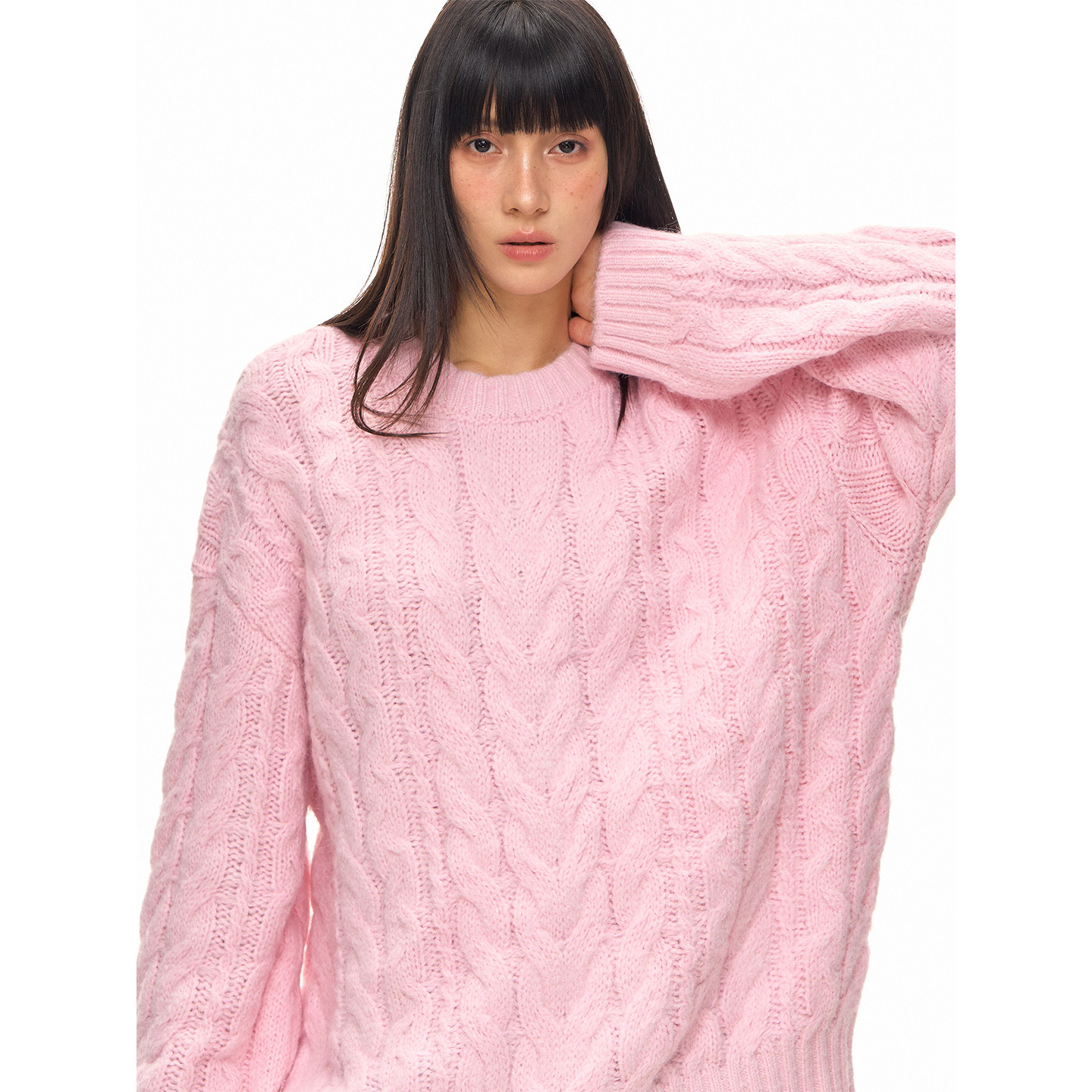 CLIMAX VISION马海毛粗针复古绞花廓袖棉花糖毛衣针织衫内搭/外穿