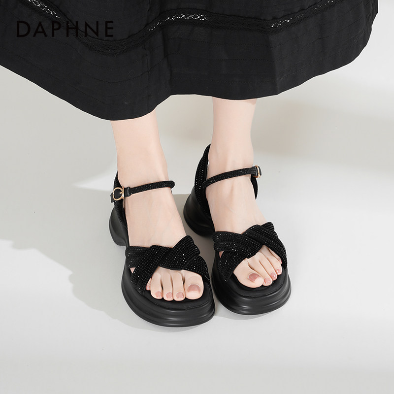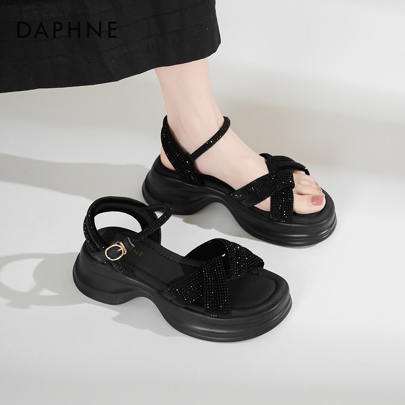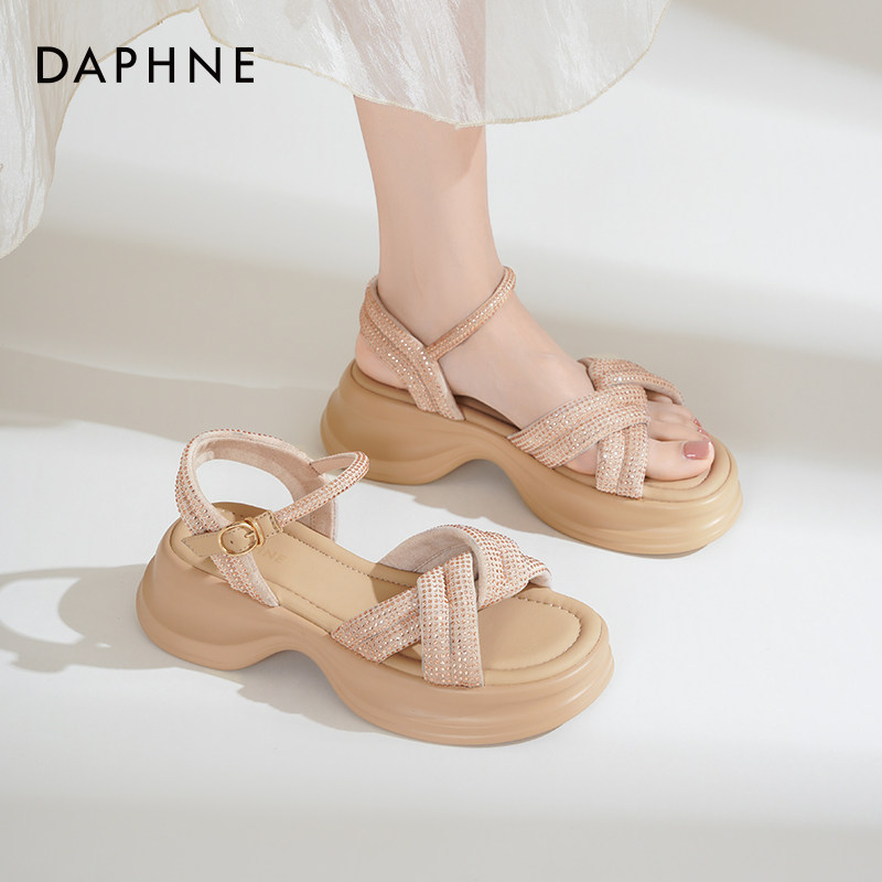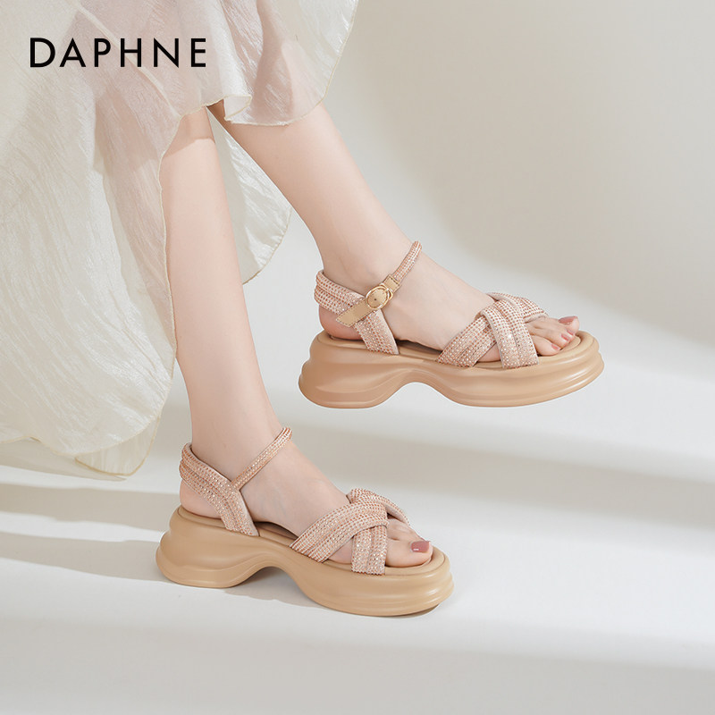 达芙妮厚底凉鞋女夏外穿2025新款增高沙滩凉鞋休闲运动凉鞋妈妈鞋