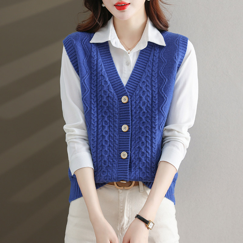 恒源祥提花针织开衫新款春秋季女装韩版时尚宽松毛衣无袖背心马甲