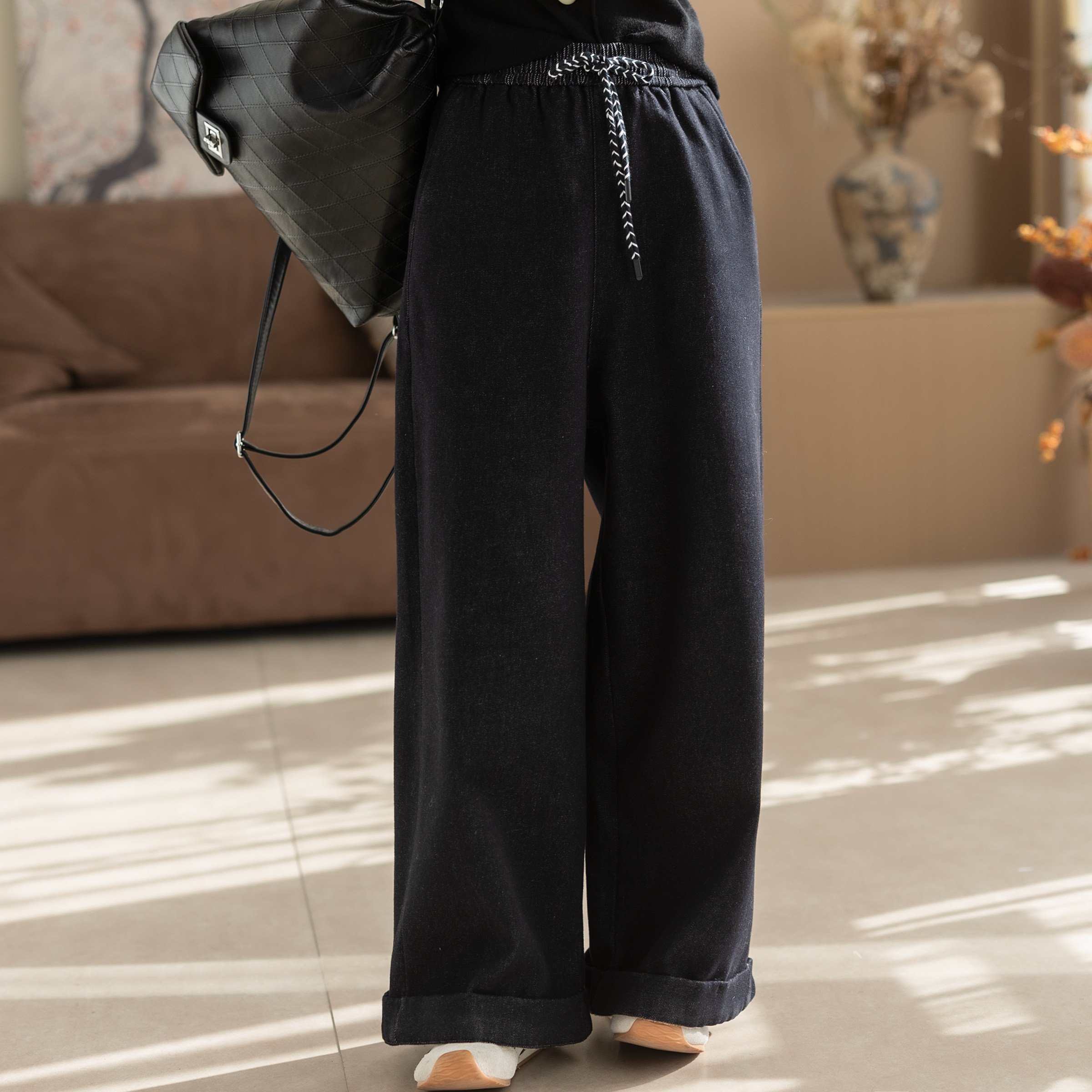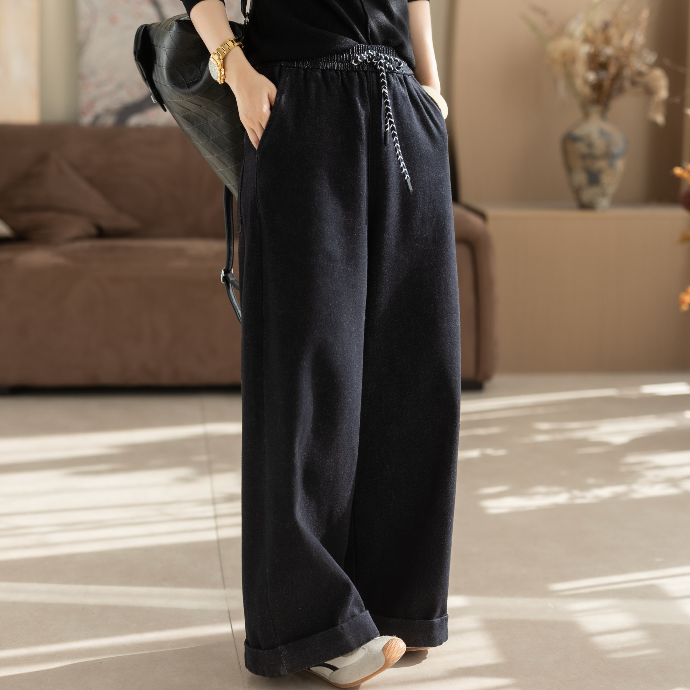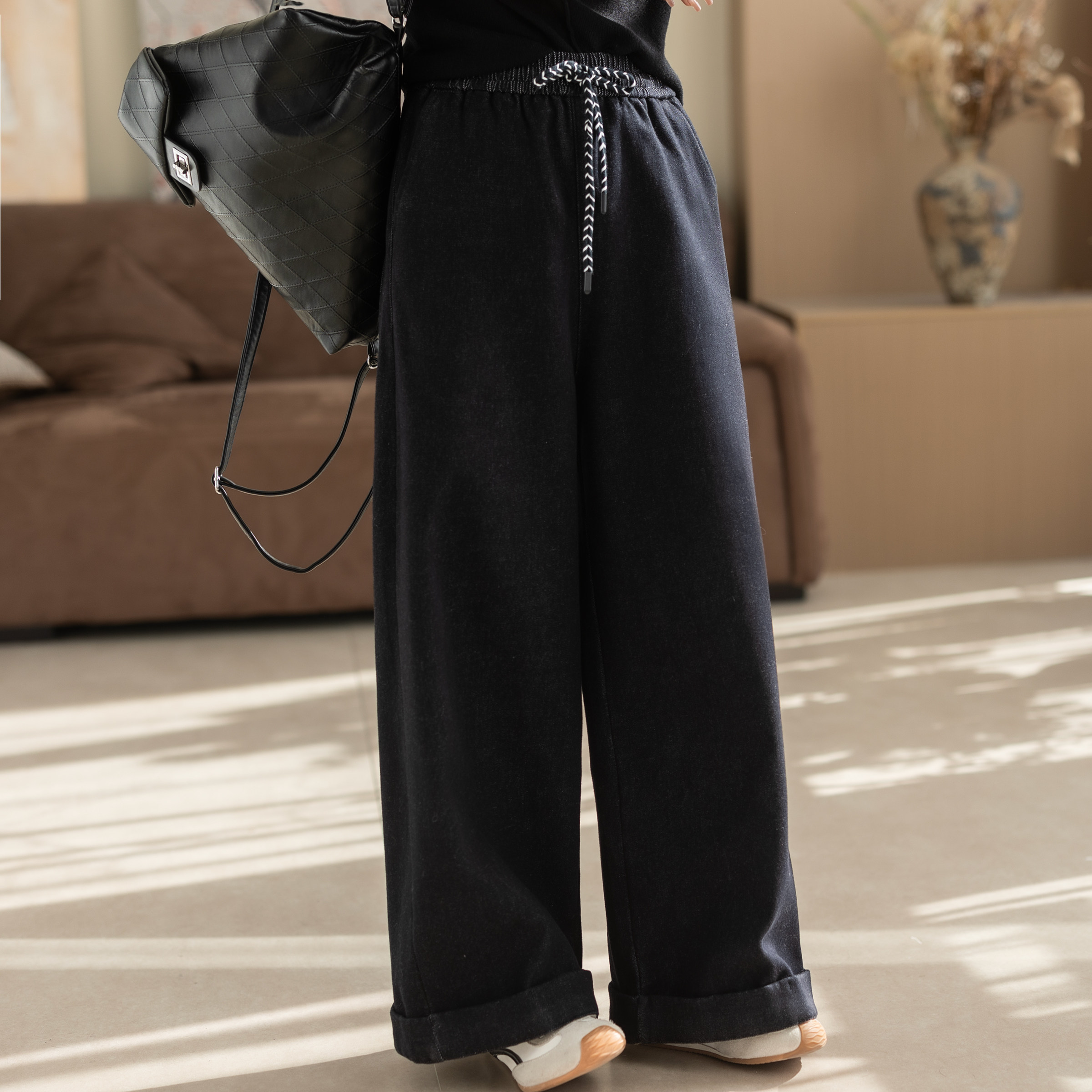 糯米裤女羊羔绒垂坠感软糯加绒加厚秋冬韩系慵懒松弛感阔腿裤TB