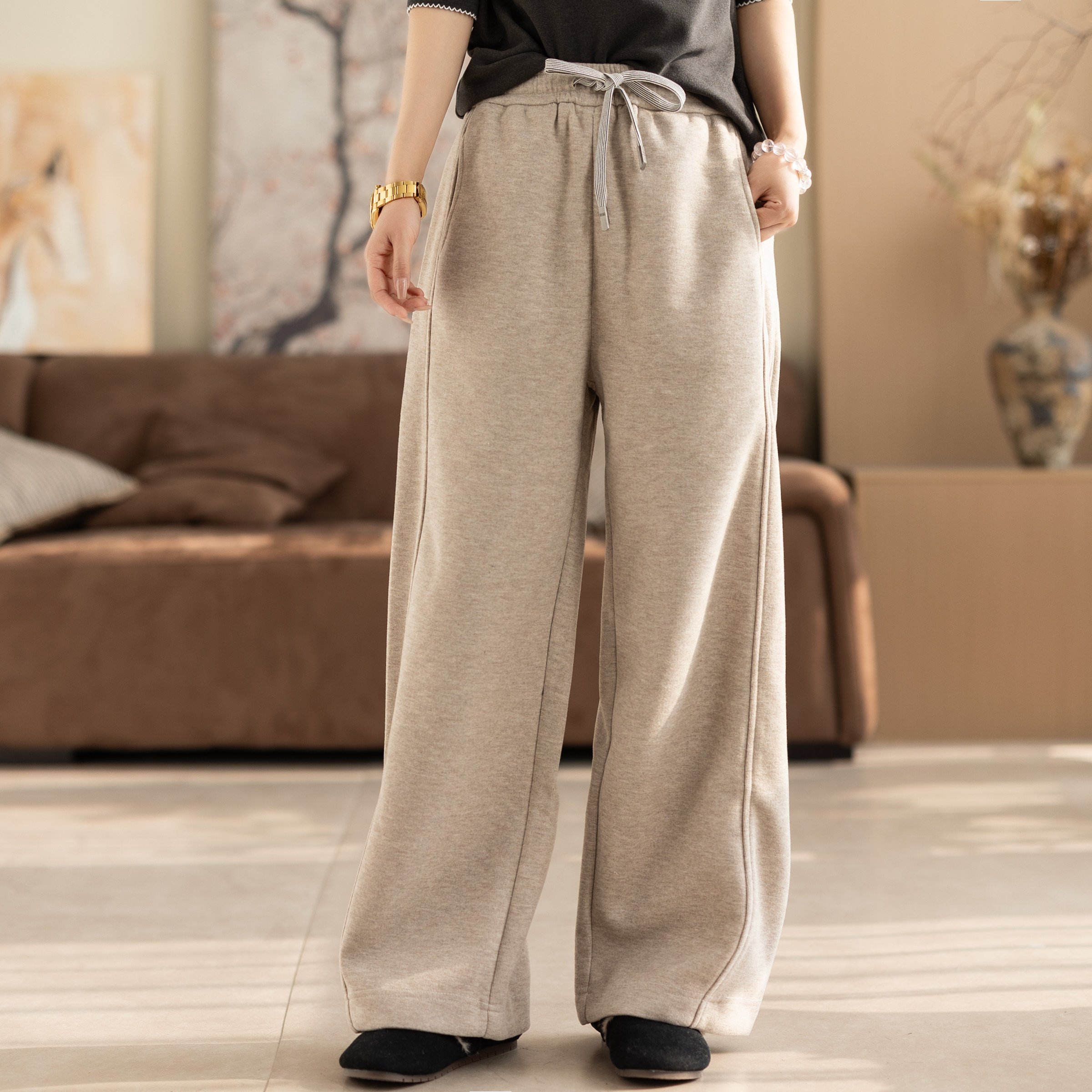 糯米裤女羊羔绒垂坠感软糯加绒加厚秋冬韩系慵懒松弛感阔腿裤TB