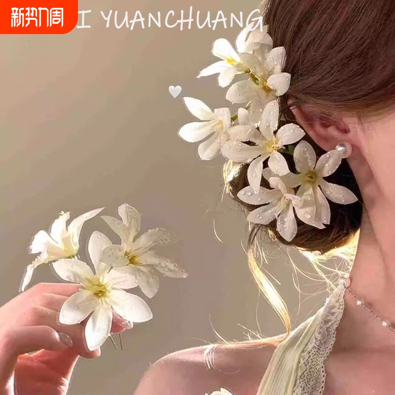 海边度假风甜美花朵发簪女氛围感拍照头花海边度假风发簪新中式