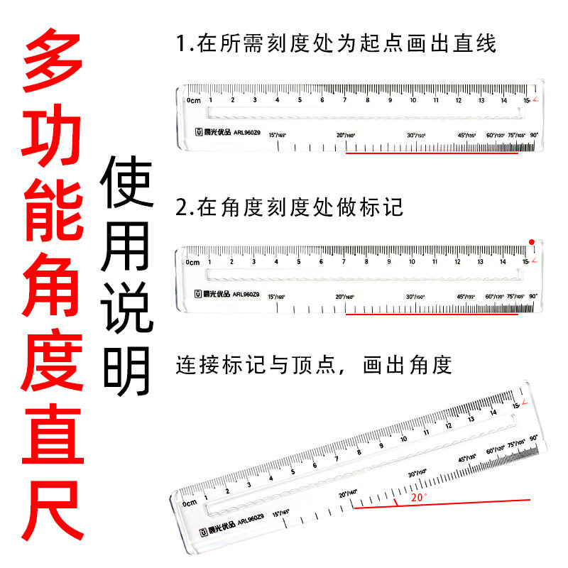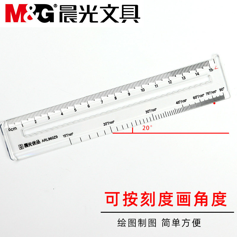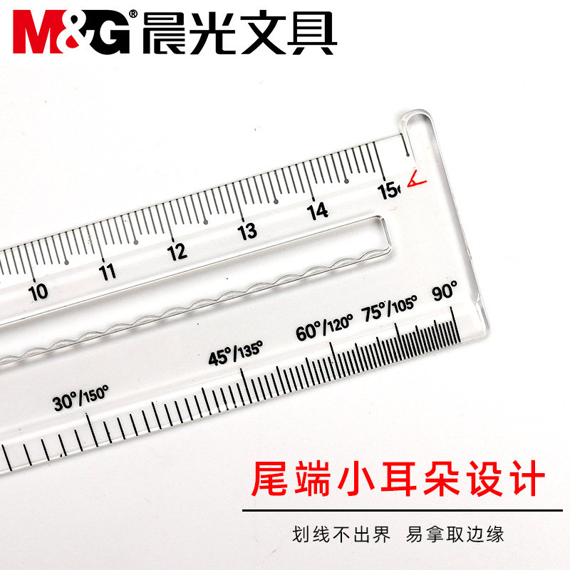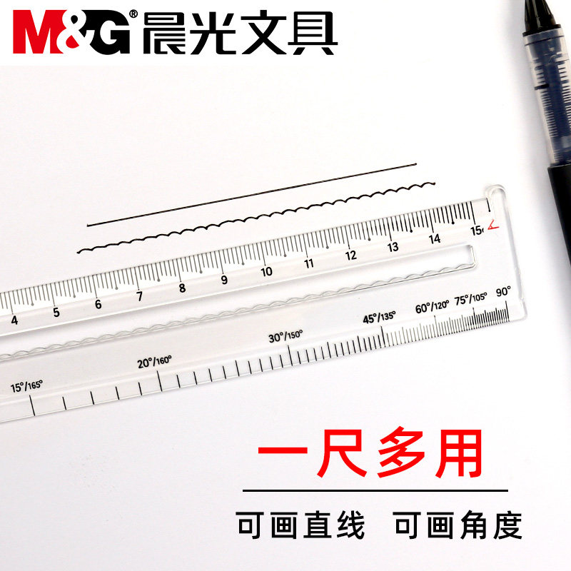 晨光优品多功能直尺塑料尺带波浪线可画角度多功能专用绘图测量透明划线尺格尺小学生刻度尺一年级文具板尺