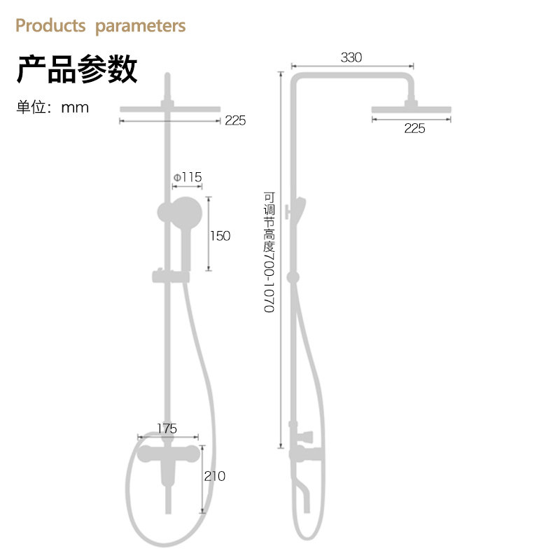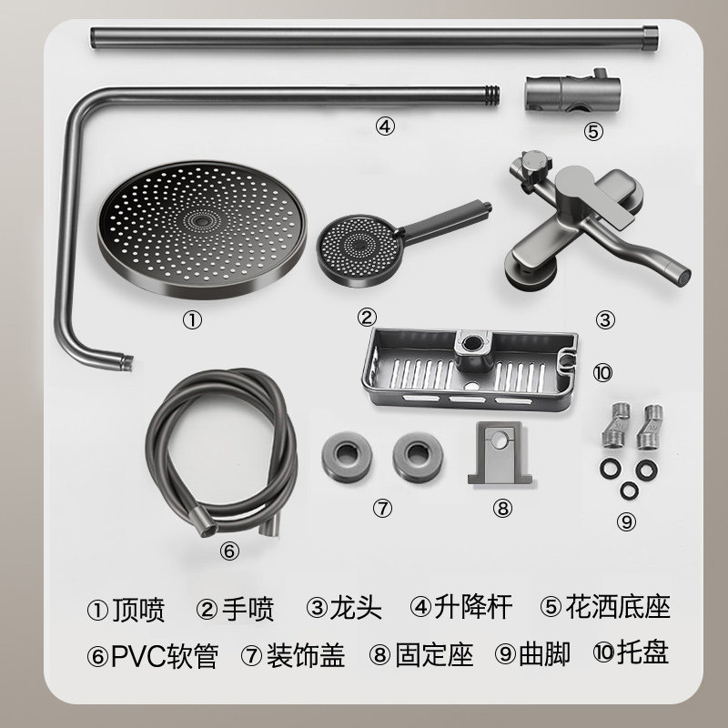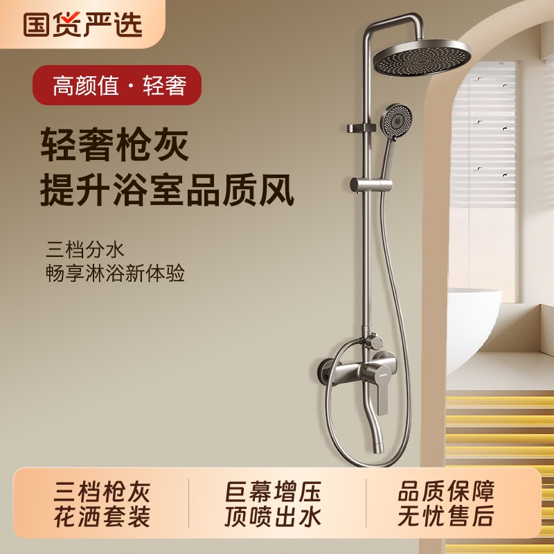 尊驰淋浴花洒套装枪灰暗装增压卫浴家用一体式手持喷头淋雨器