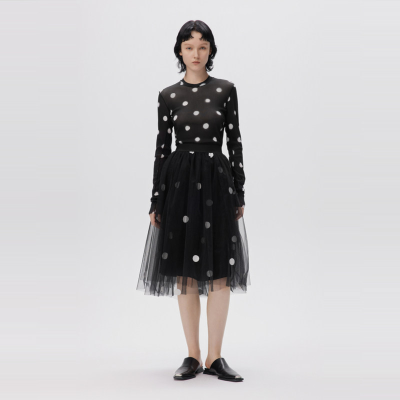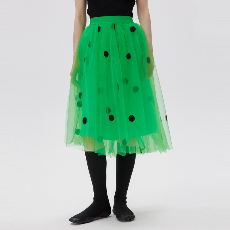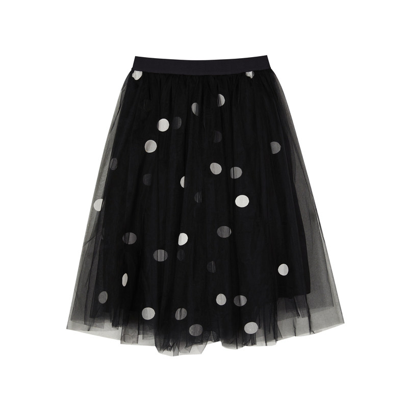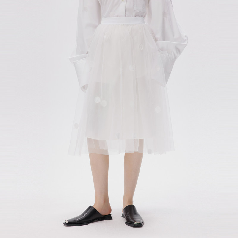 JNBY/江南布衣春秋季网纱裙女波点中长裙A字裙半身裙松紧腰蓬蓬裙