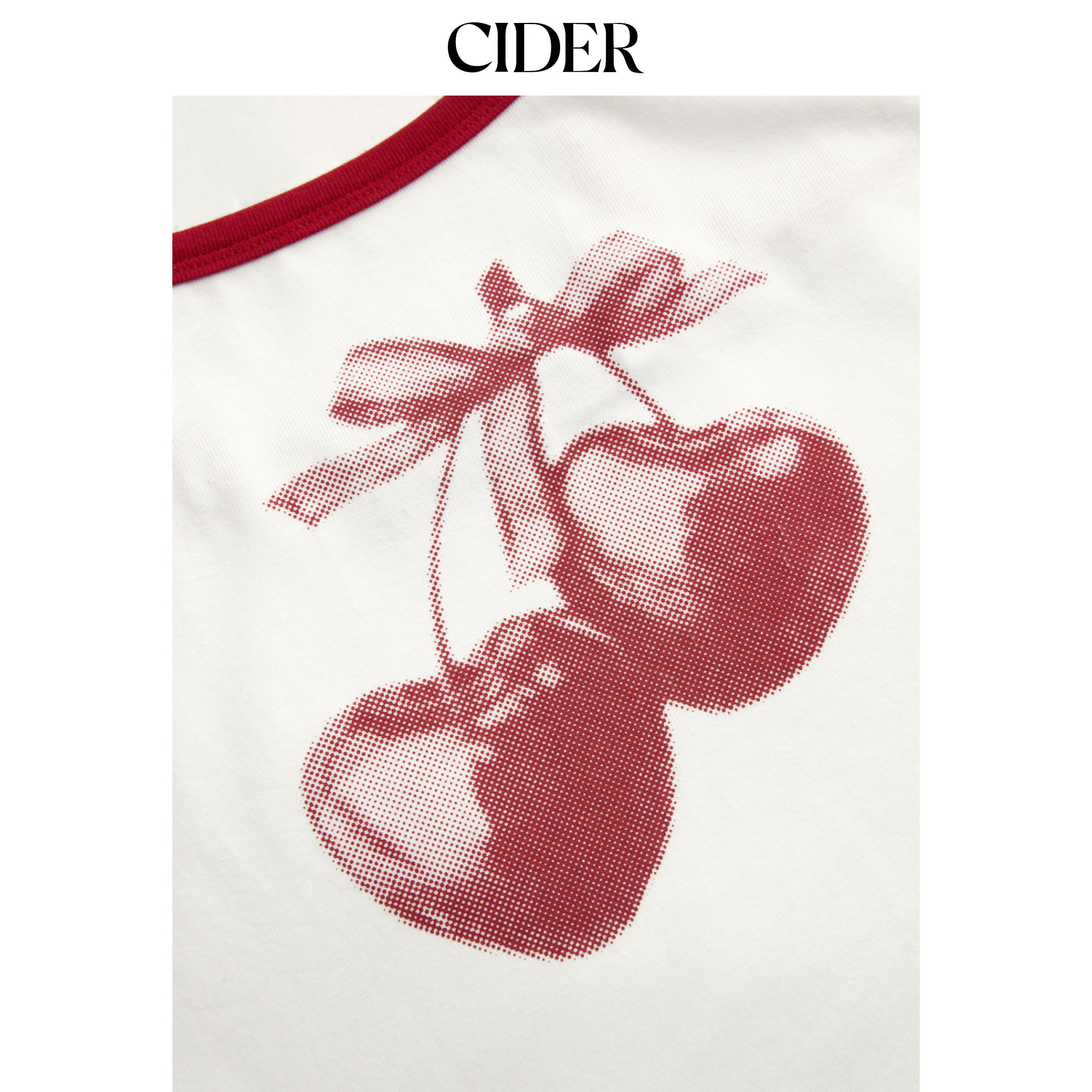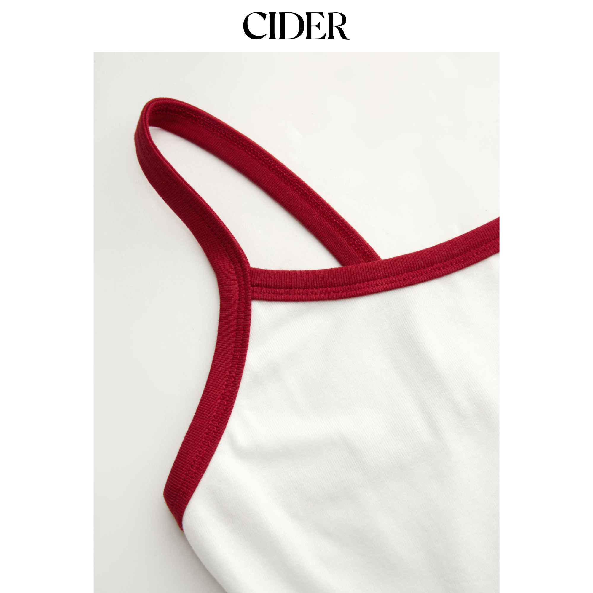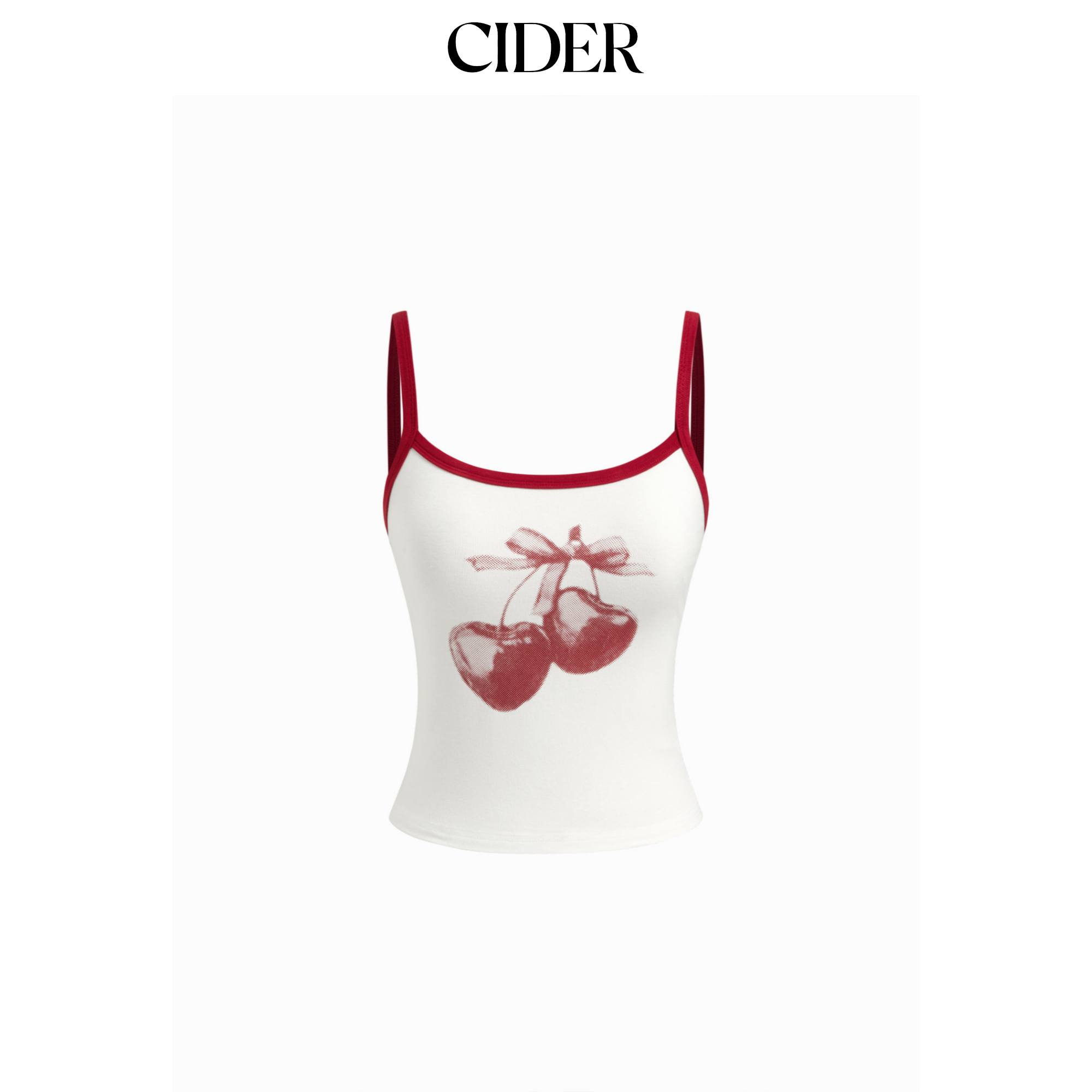 【明星同款】cider夏季樱桃印花撞色镶边短款吊带上衣114722795
