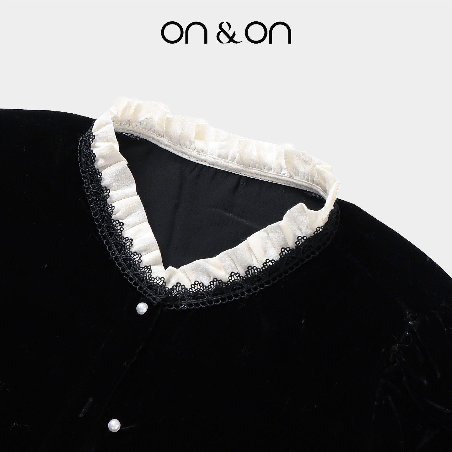ON&ON/安乃安2025冬季新款法式赫本风木耳领气质精致丝绒小衫女
