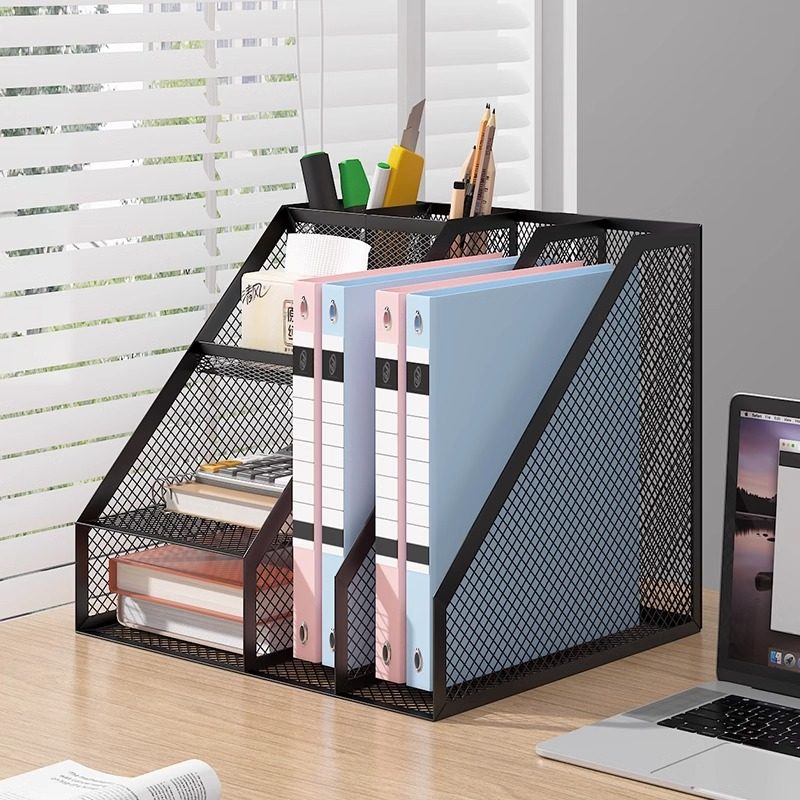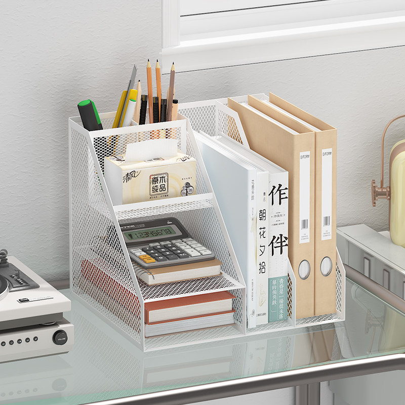 办公桌收纳置物架文件收纳盒办公用品文件架桌面书架多层大容量文件框文件夹A4纸资料档案整理架金属书立架