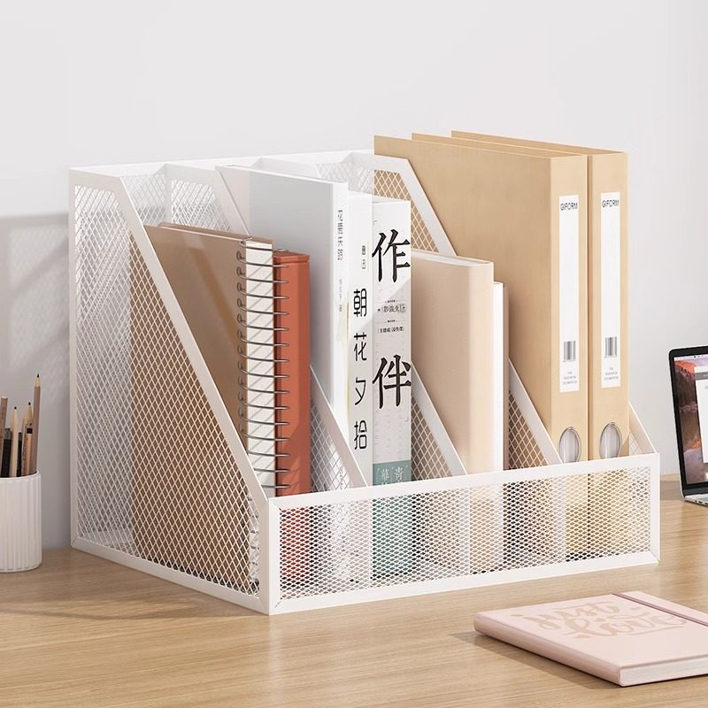 办公桌置物架金属书架文件收纳盒大容量档案资料收纳整理书立架办公室用品大全分类铁艺文件书框小型收纳书架