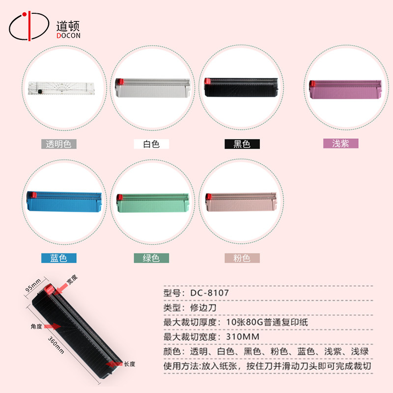 道顿 DC-8107 A4切8张小型简约手动修边刀切纸机裁纸机裁纸器照片封皮照片复印纸家用美工刀多色可选