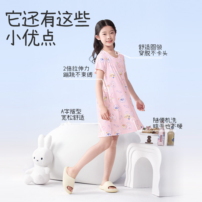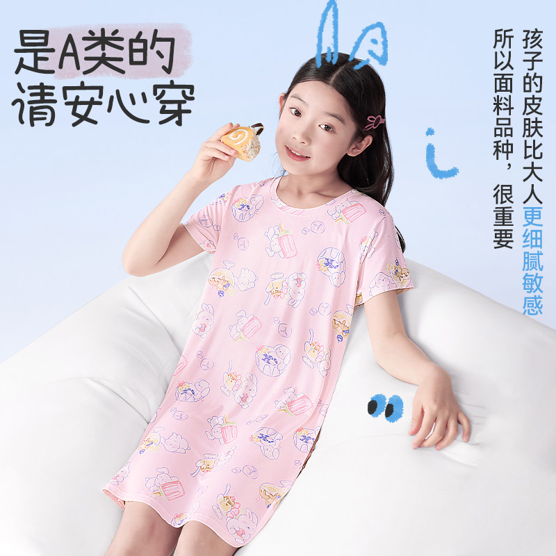 久岁伴儿童睡衣女童春秋宽松排汗睡裙中大童可爱小女孩公主家居裙