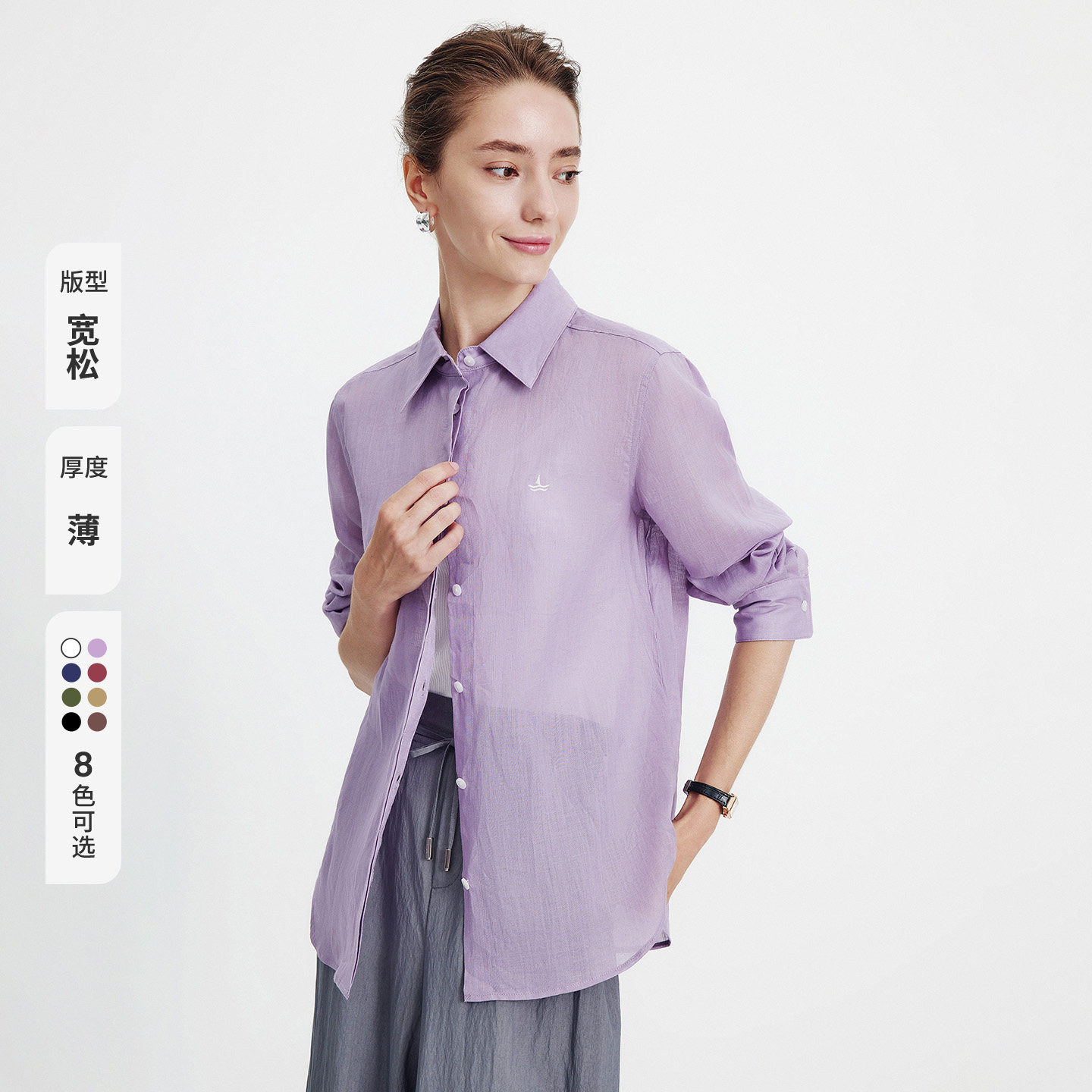 Navigare意大利小帆船时尚紫色衬衫女长袖2026春夏宽松休闲衬衣