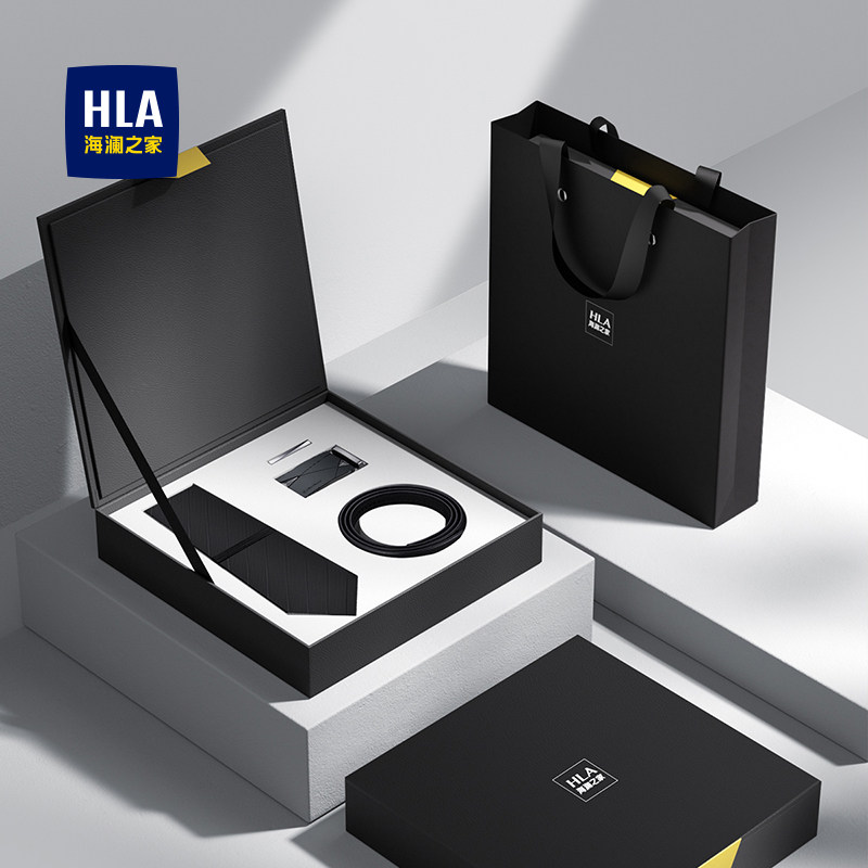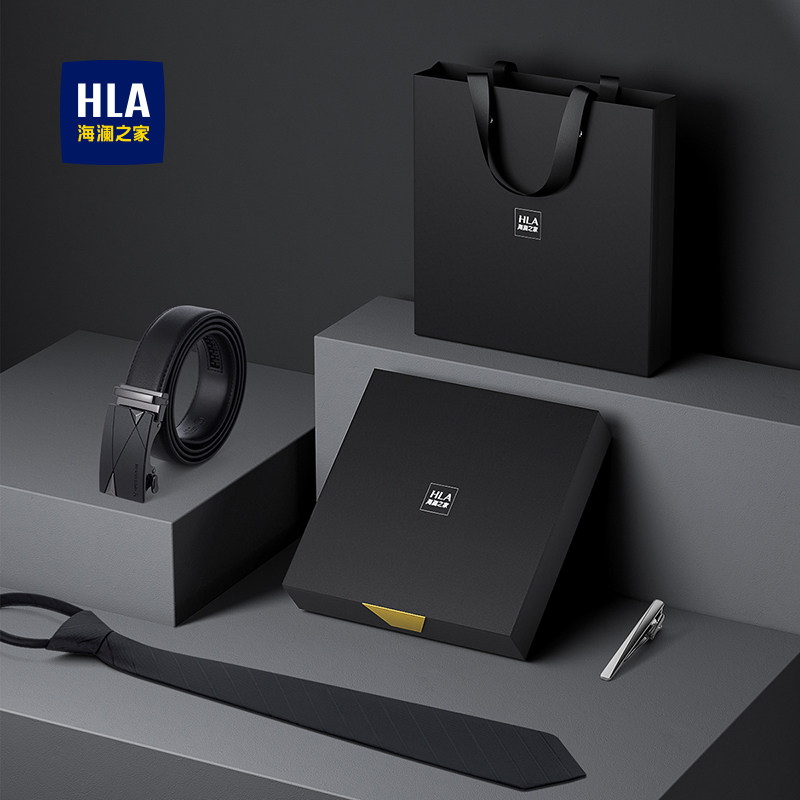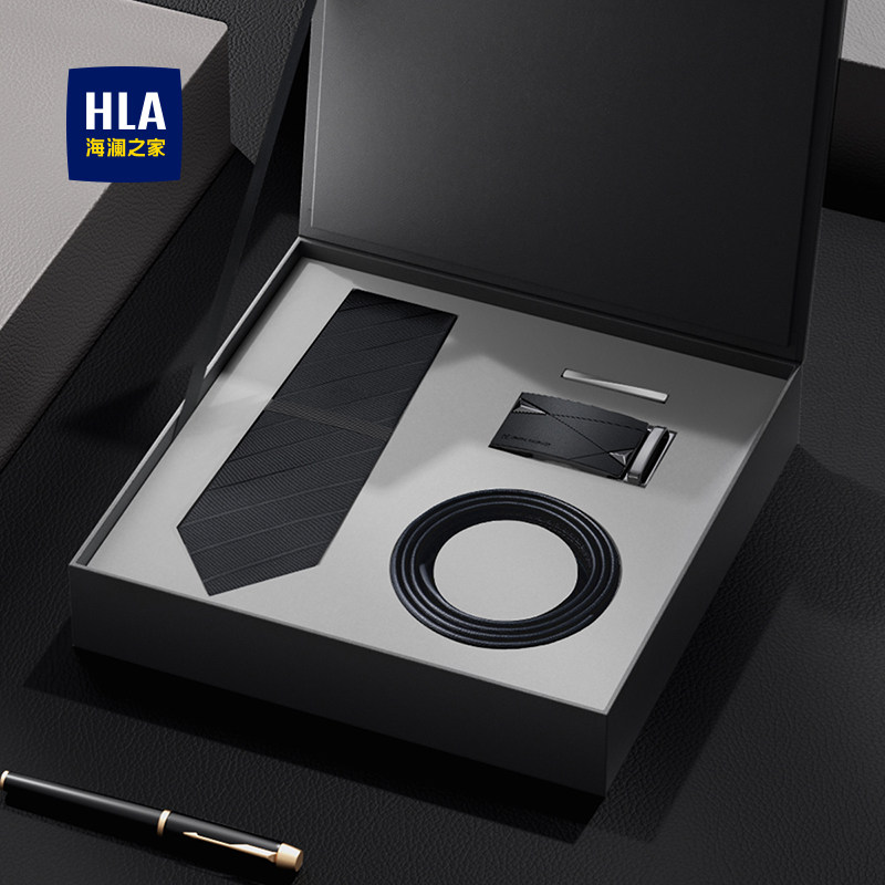 海澜之家真牛皮腰带领带夹领带套装礼盒商务潮休闲生日送礼物实用