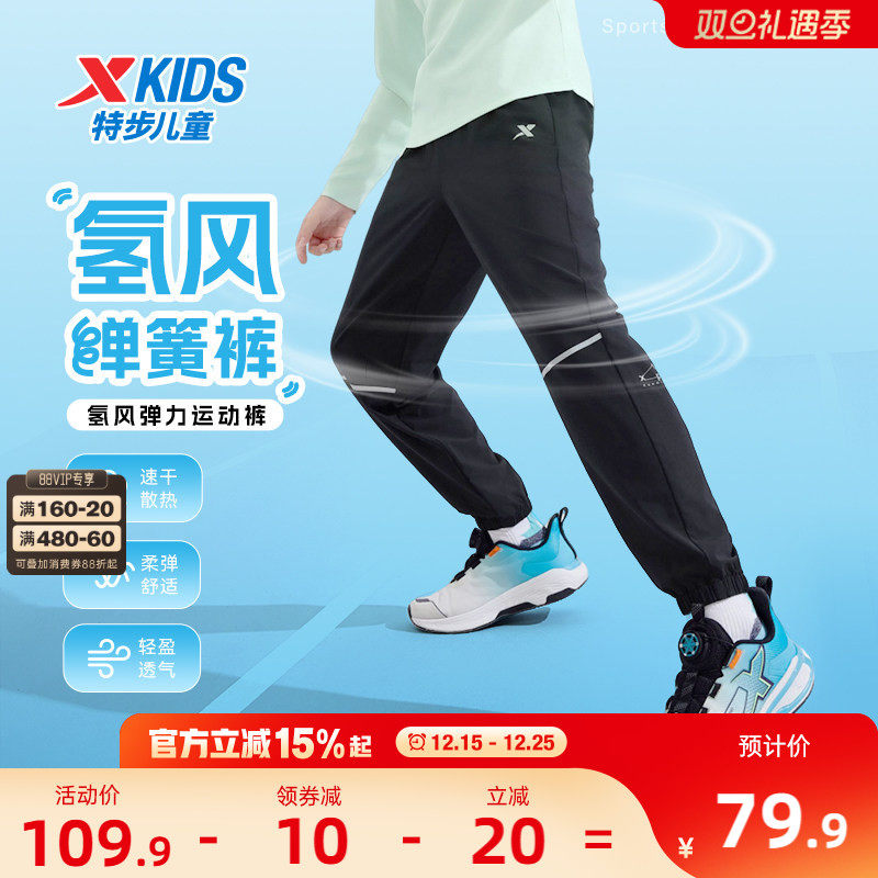 特步童装儿童速干运动裤男童裤子2025夏季新款大童薄款夏装防蚊裤