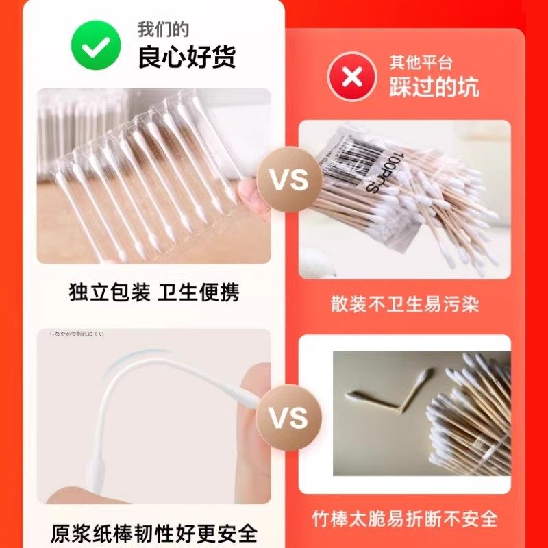 独立包装一次性棉签掏耳化妆用清洁双头棉棒消毒清洁卫生尖头圆头