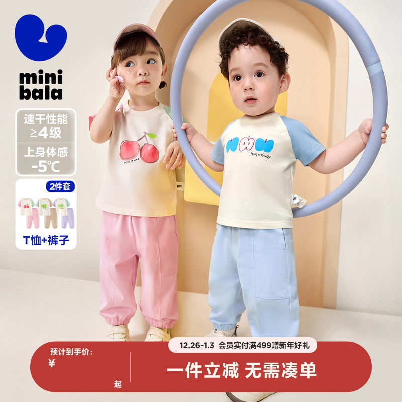 [棉感速干]迷你巴拉巴拉套装男女童儿童婴儿衣服短袖长裤夏季新款