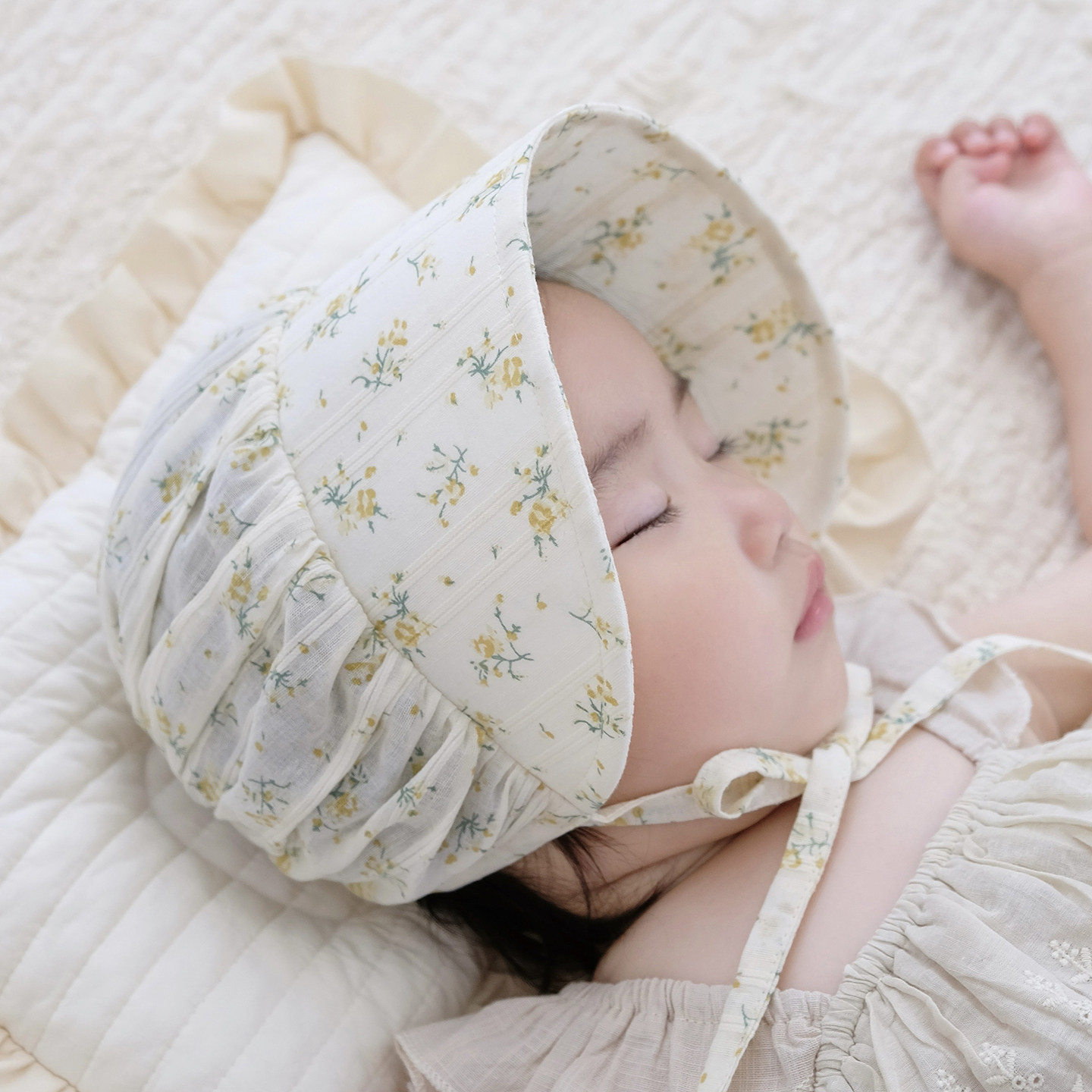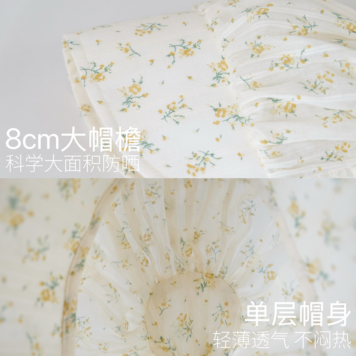 婴儿遮阳帽纯棉薄款单层透气韩版小碎花大帽檐防晒宝宝太阳帽夏季