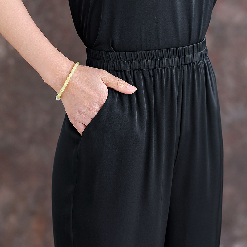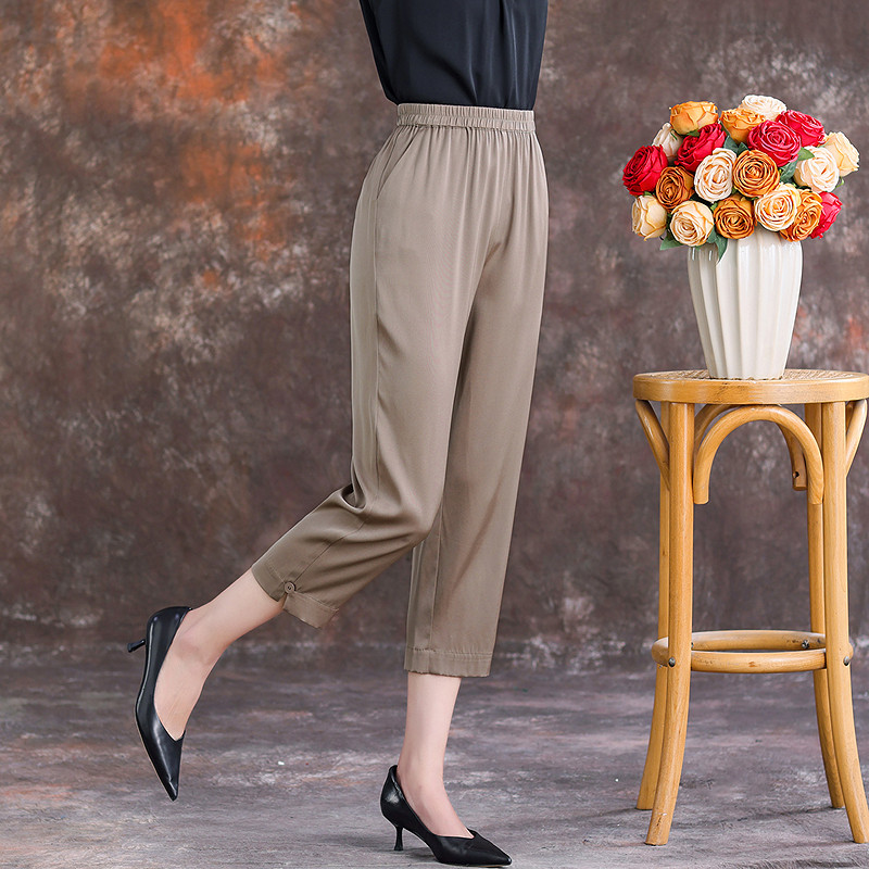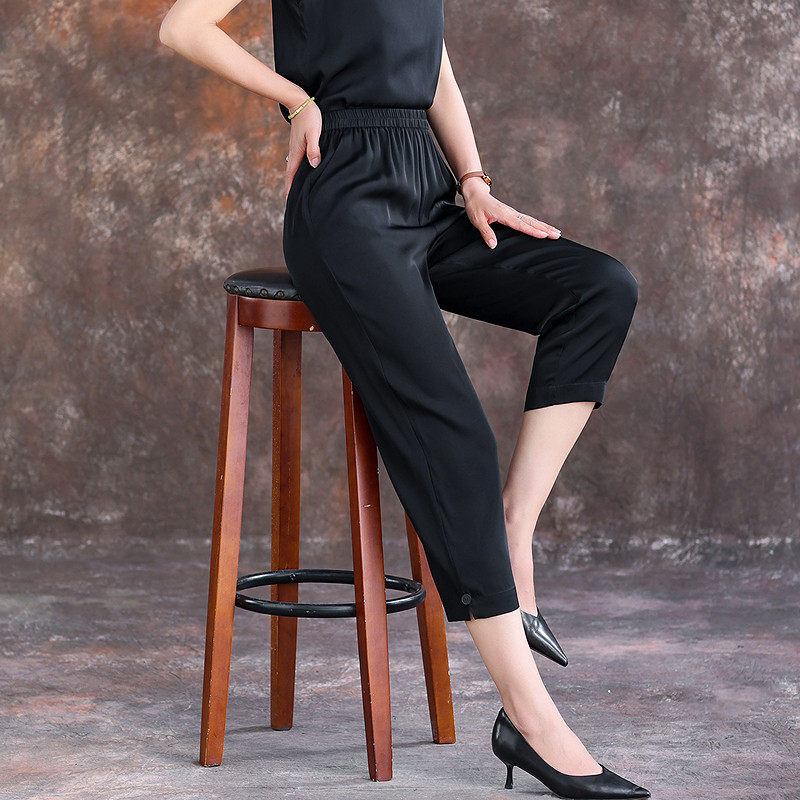 齐黛品牌真丝休闲裤女2025夏季新款时尚显瘦松紧腰真丝七分裤子