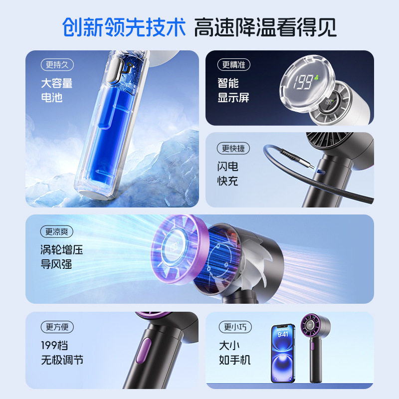 2025新款高速手持风扇199档数显学生户外小型便捷手持小风扇USB风扇