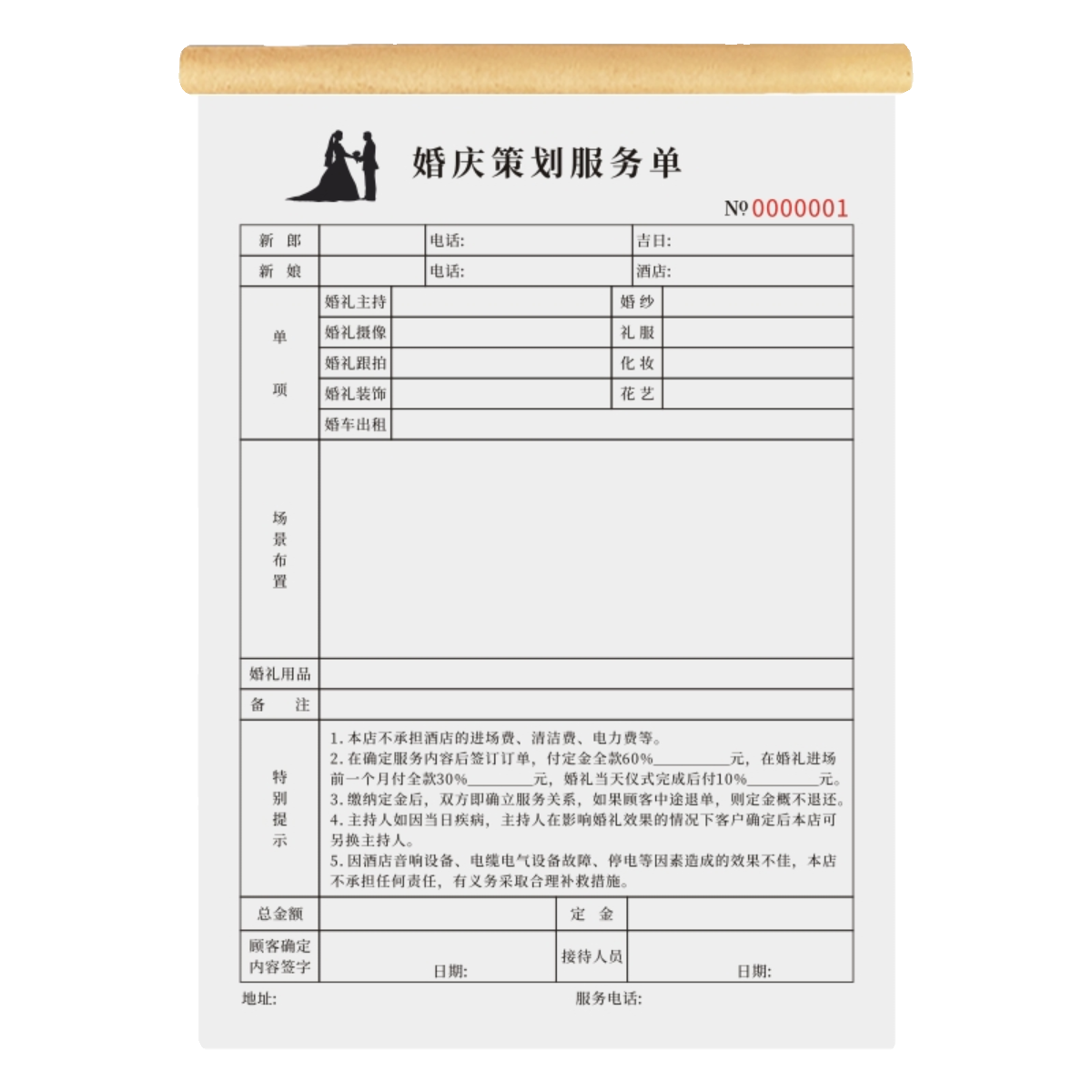婚庆策划服务单定做二联婚礼策划方案接单流程婚庆公司订单合同单