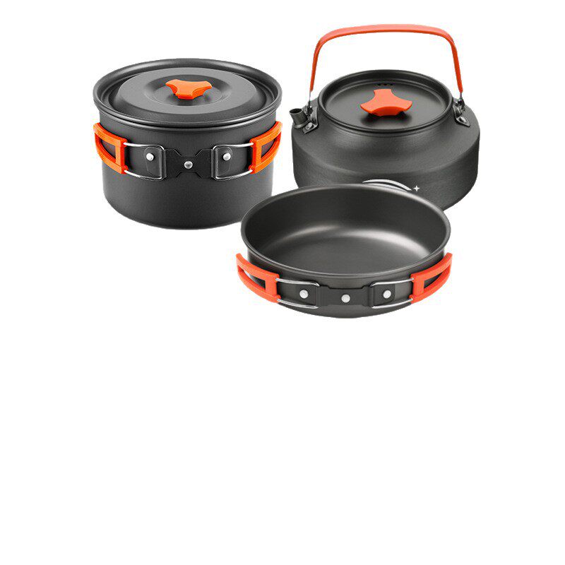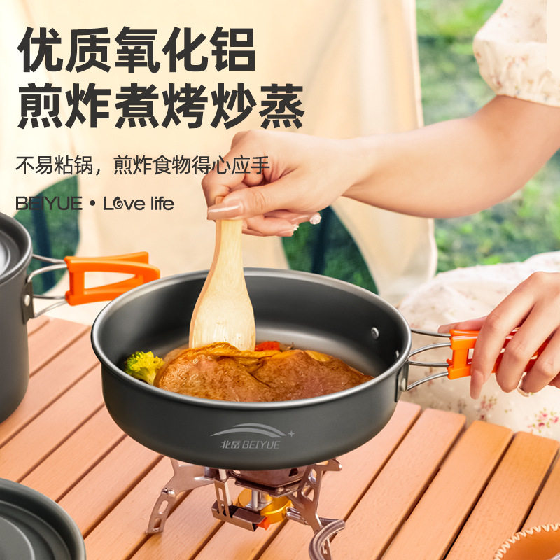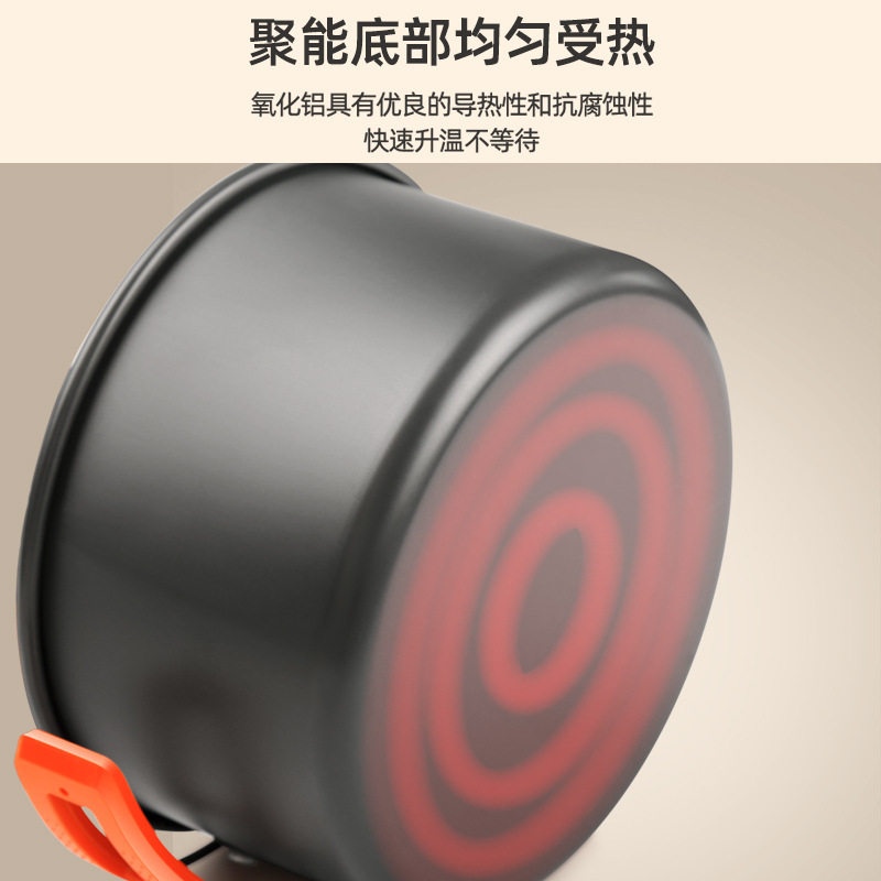 户外锅具铝合金双耳野营套锅烧水壶大煎锅全套组合便携式野营套锅