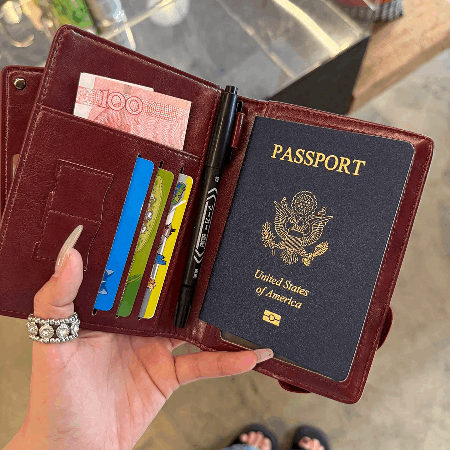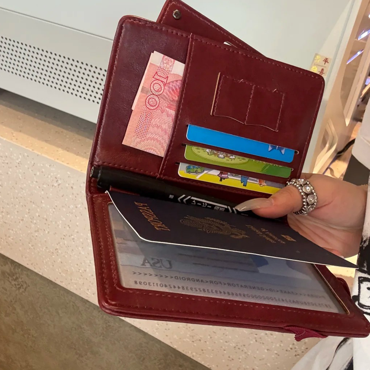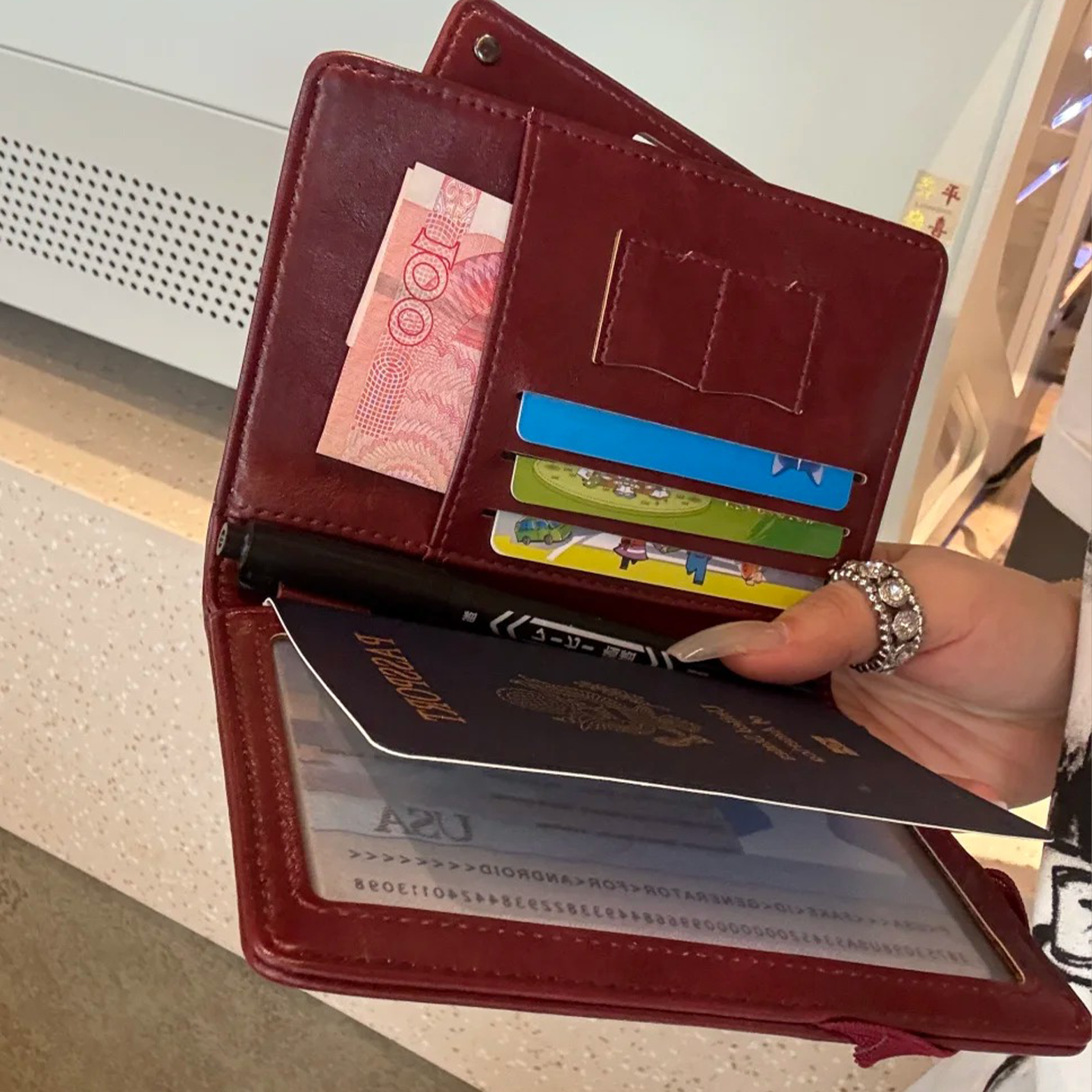 红色钱包卡包证一体护照夹收纳包马年喜庆多功能机票旅行小证件包