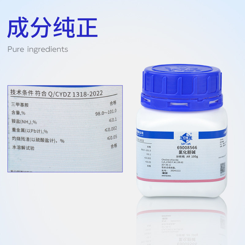 国药氯化胆碱学试剂AR 98.0~101.0%化实验室专用增产工业调节剂