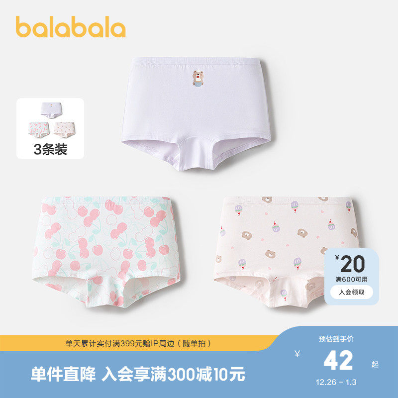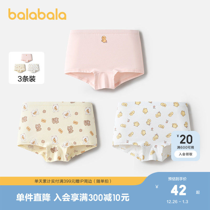 【miiiiichan IP】巴拉巴拉女童内裤平角儿童四角短裤抗菌三条装