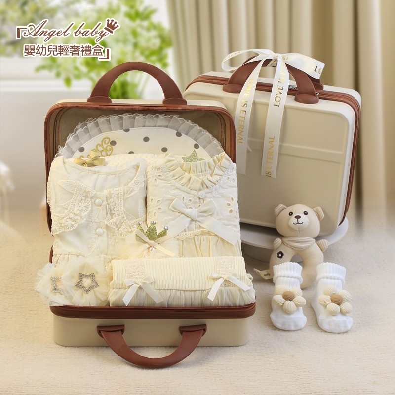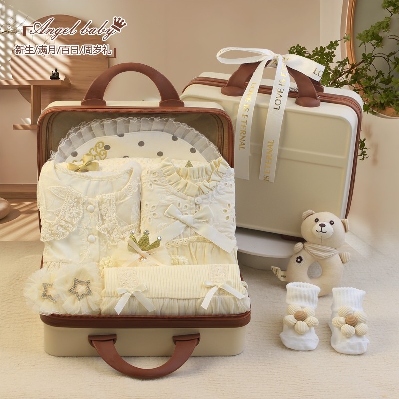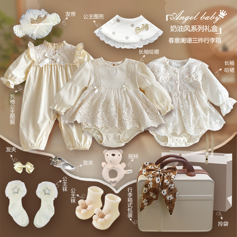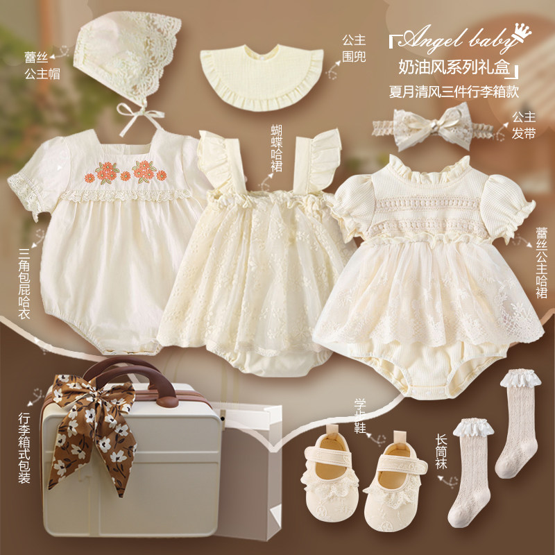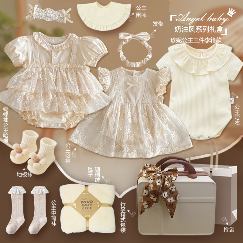春夏奶油风小公主满月礼盒宝宝出生见面礼百日周岁宴礼服新生礼物