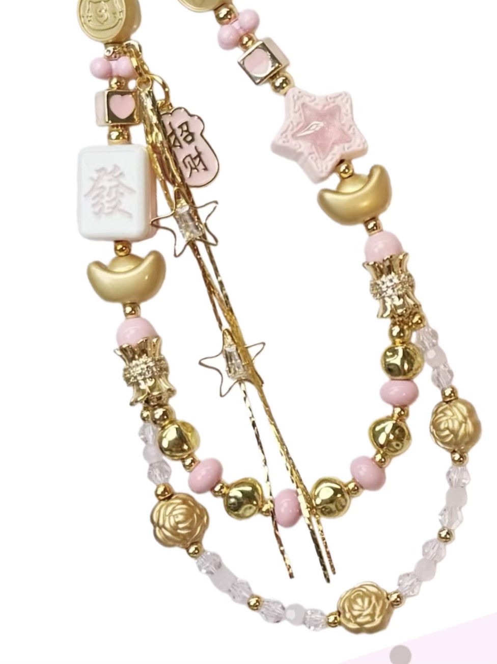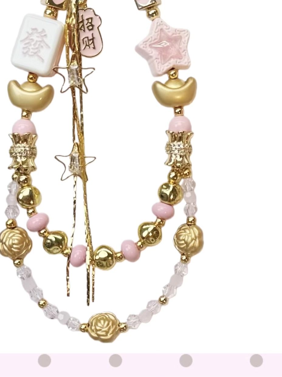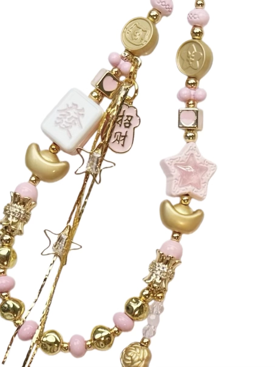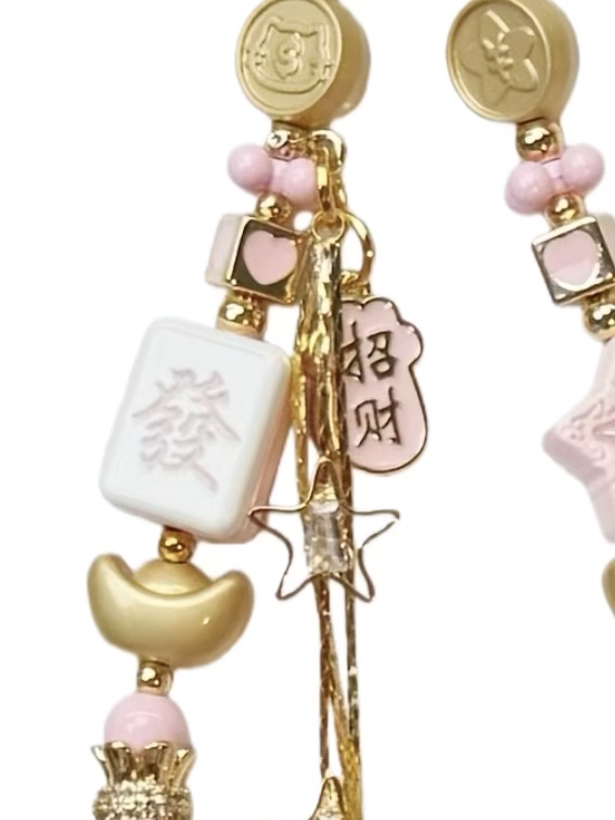 粉金合金元宝手机挂件手工串珠麻将发财钥匙链包包挂饰新年手机链