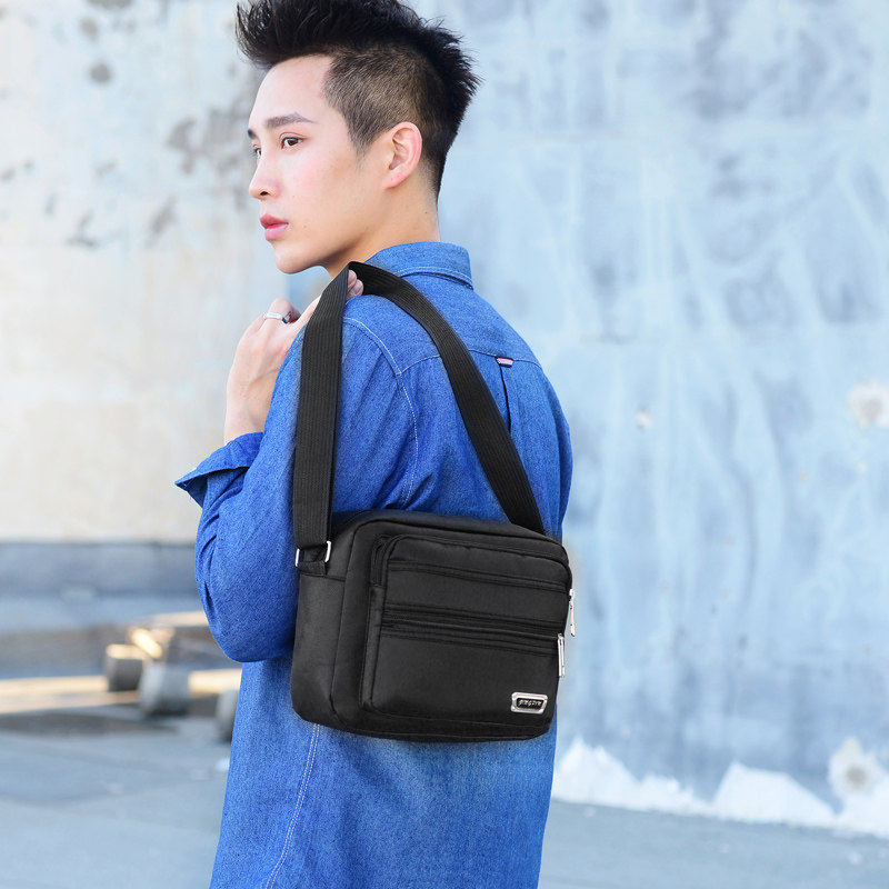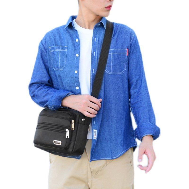 男包牛津布单肩包男斜挎包休闲包男士包包背包横款多层拉链收银包